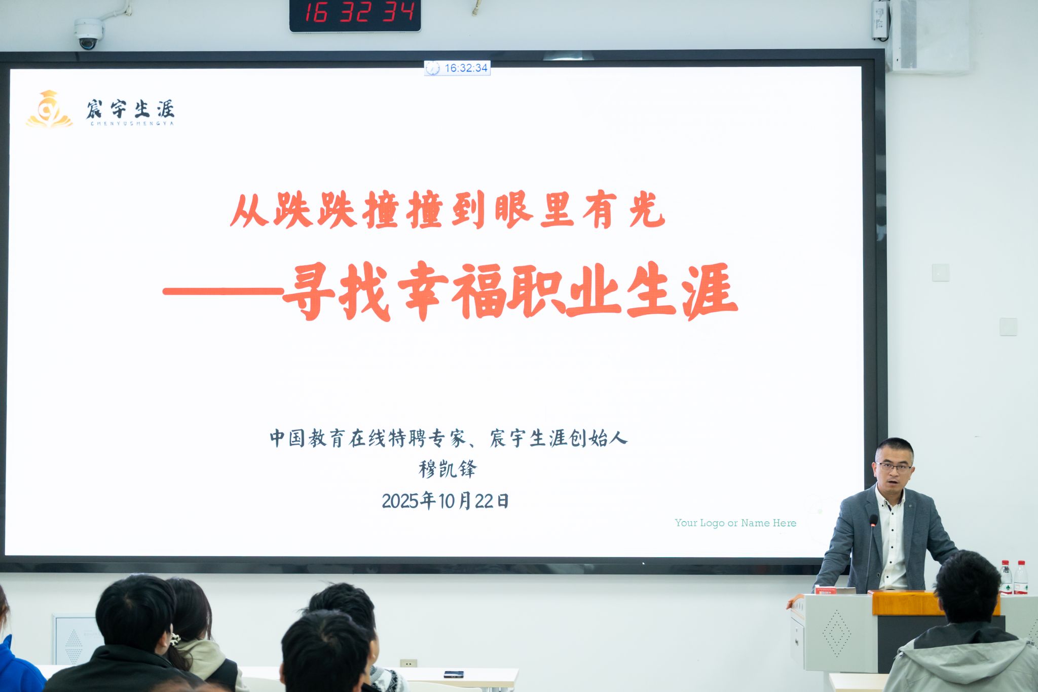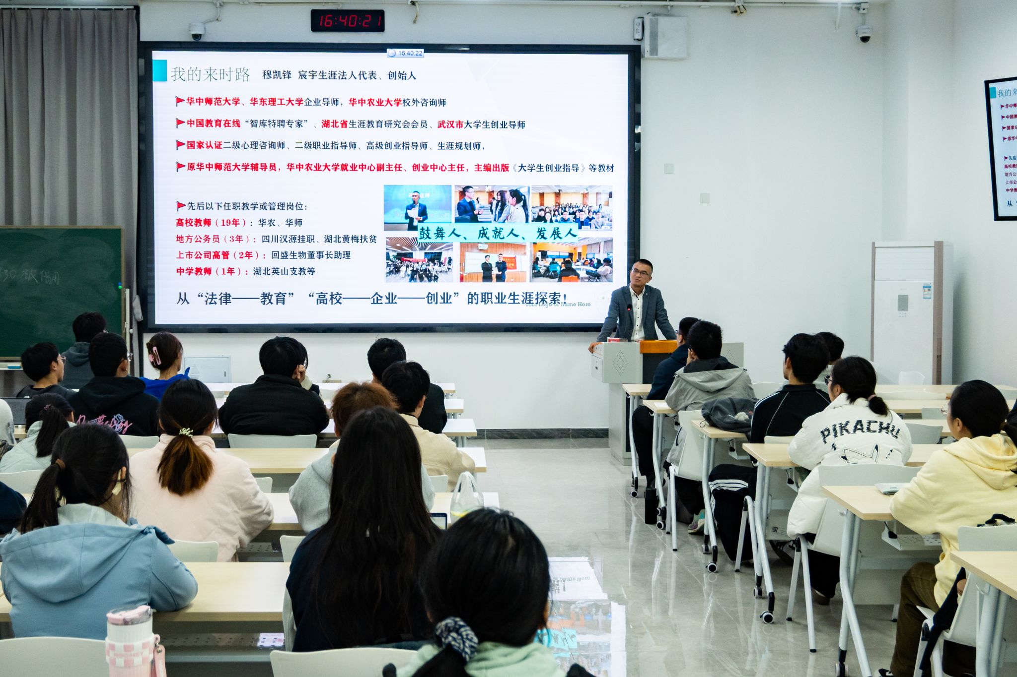 10月23日下午,我院职业规划部在襄阳书院二教116教室举办“三导师”系列活动之“职引计划”第四十五讲,特邀中国教育在线特聘专家、宸宇生涯教育咨询有限公司创始人穆凯锋担任实践导师,为我院及工学院24级109名学生开展职业生涯规划专题指导。