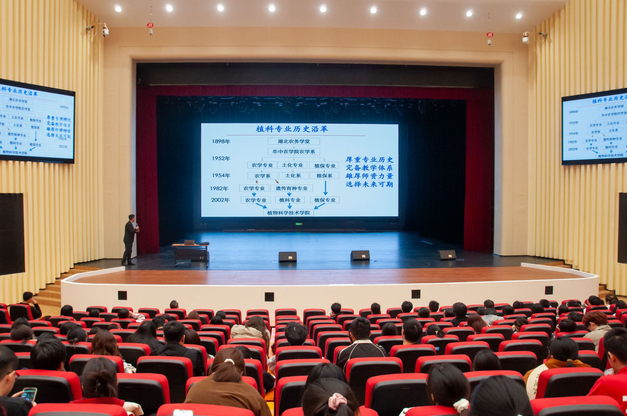 115日,学院在襄阳书院剧场举行2024级植物生产类专业分流宣讲会。黄求应、易斌、谢甲涛、余四斌教授分别围绕应用生物科学、农学、植物科学与技术、植物保护、种子科学与工程五个专业作专题宣讲,为学生专业选择提供指导。