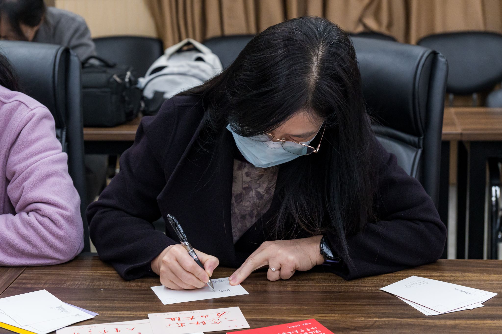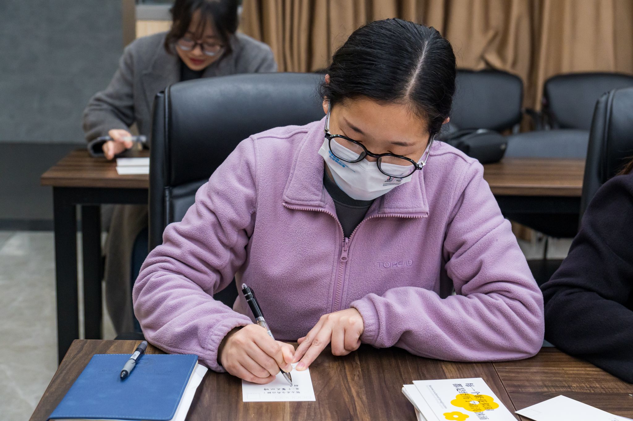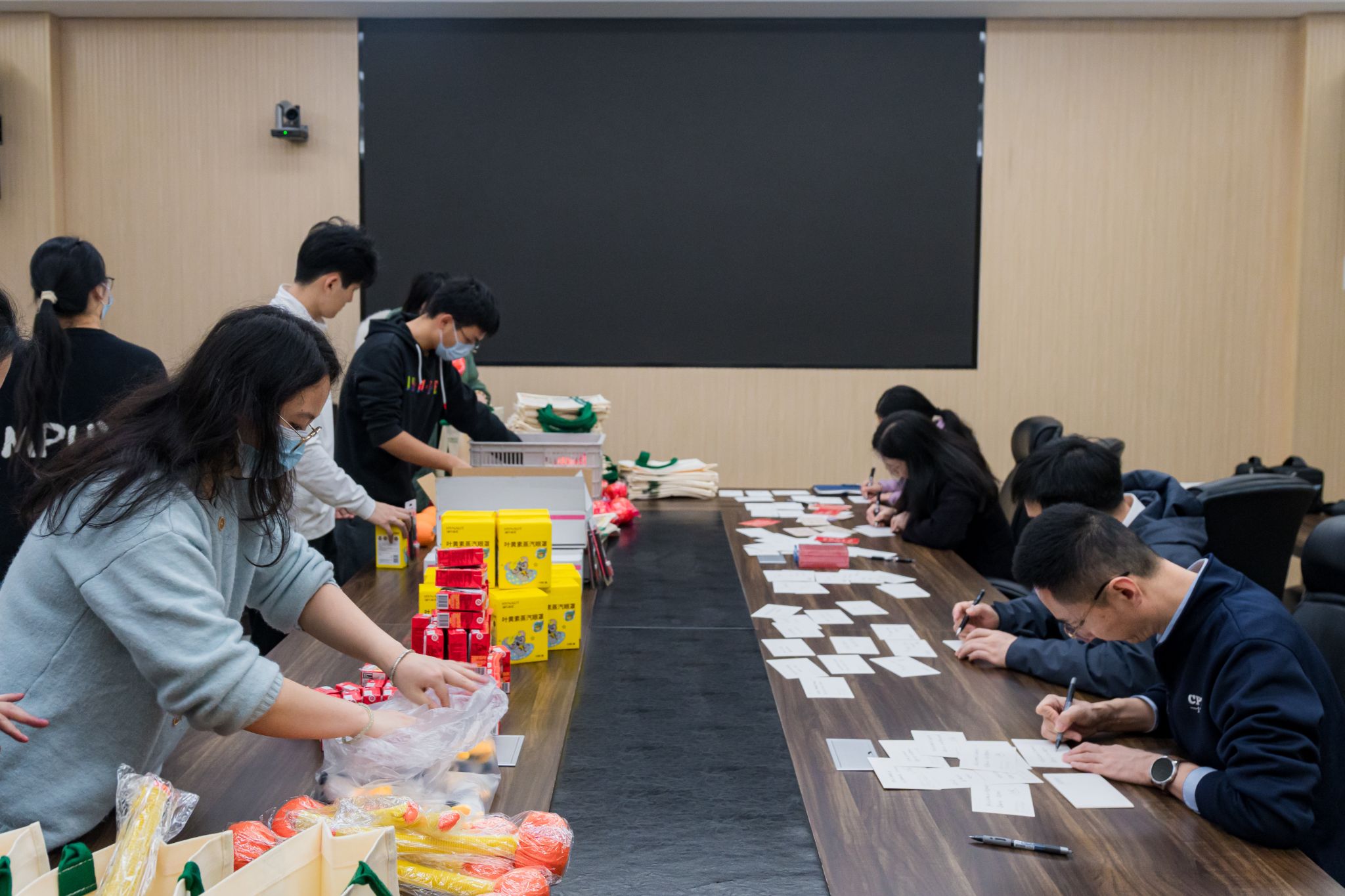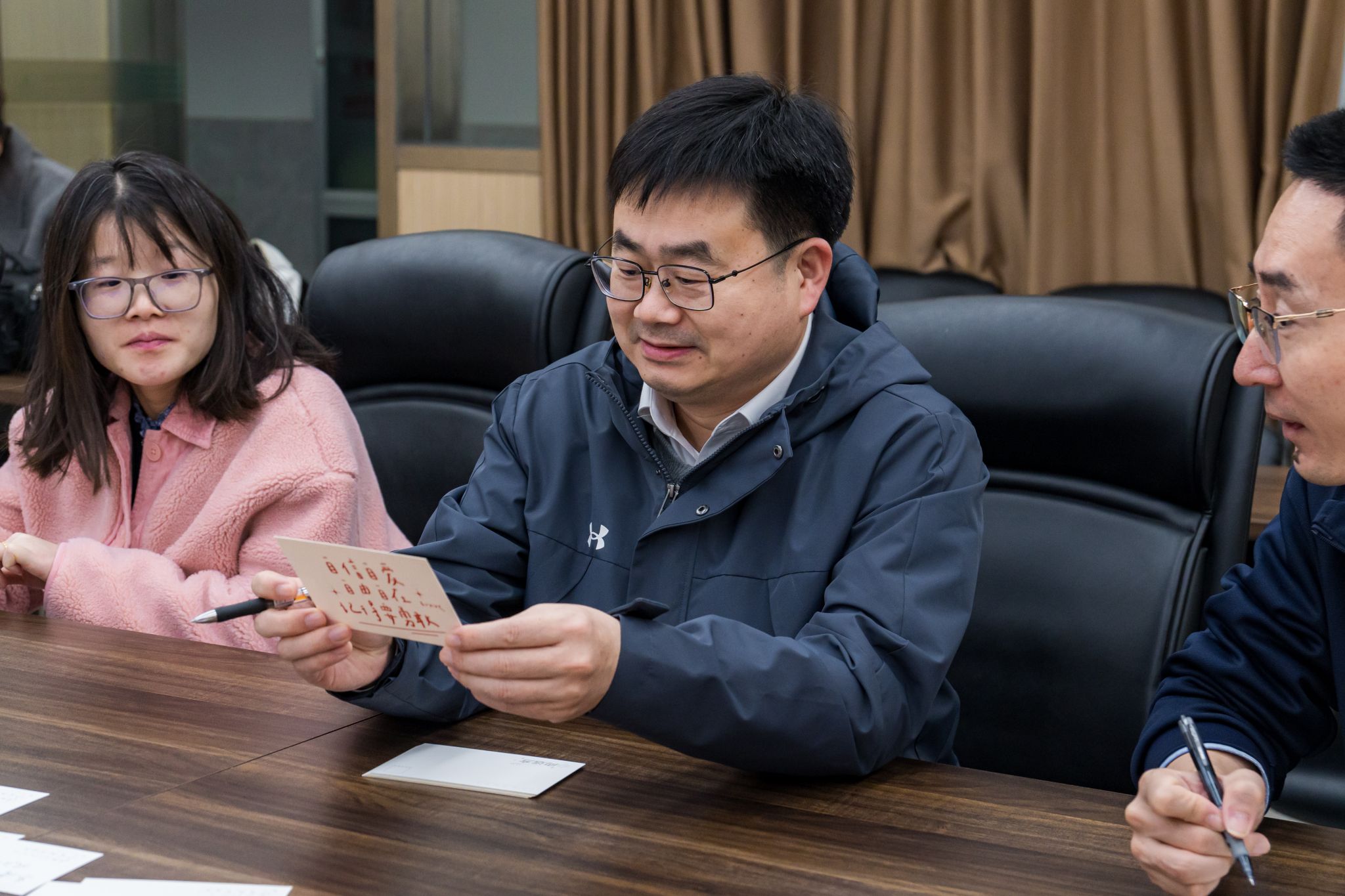 活动现场暖意融融,学院党委书记周雄、党委副书记姜海、副院长程永扬与学院行政老师、辅导员、本研学生骨干一同为备考学生分装“加油包”,并在明信片上亲手书写鼓励话语。