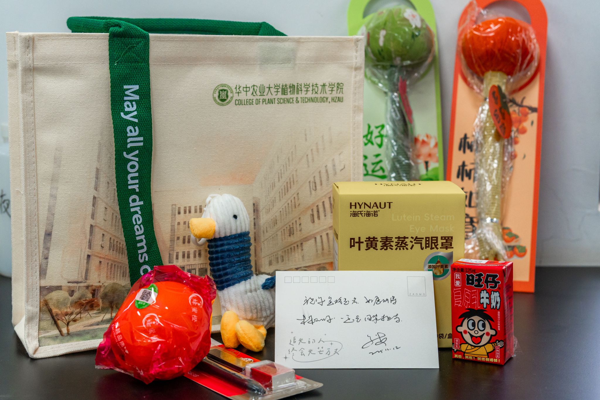 本次准备的“加油包”内含多项实用且寓意美好的物品:寓意“一旺到底”的旺仔牛奶、象征“‘橙’功上岸”的橙子,以及可缓解疲劳的艾草锤与蒸汽眼罩、考试文具、学院定制帆布包和“加油鸭”挂件,每一份物品都承载着全院师生对考生“金榜题名、身心健康”的双重祝愿。