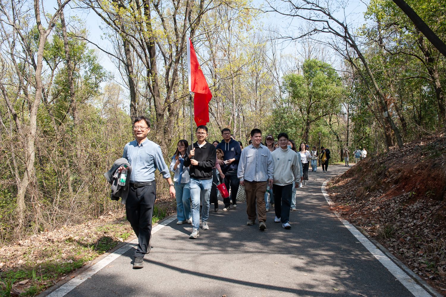 谢卡斌老师每年都会带领课题组的同学参加“狮山长走”活动,他说:“今年参与人数更多,氛围也愈发热闹。每年这个时节的景色最为迷人,能有这样一同漫步的机会实属难得。况且研究生学业压力较大,此类活动对他们的心理健康大有益处。大家并肩同行,即便无需时刻交流,也能真切感受到同学们的愉悦,更好更深入地了解他们。