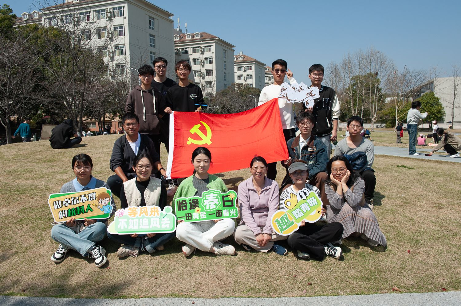 农药党支部的李静波同学提到:“科研虽忙,也要认真感受春天、欣赏美景。虽说这不是竞技活动,但我们也要一马当先,捕捉难得的美丽狮山春景