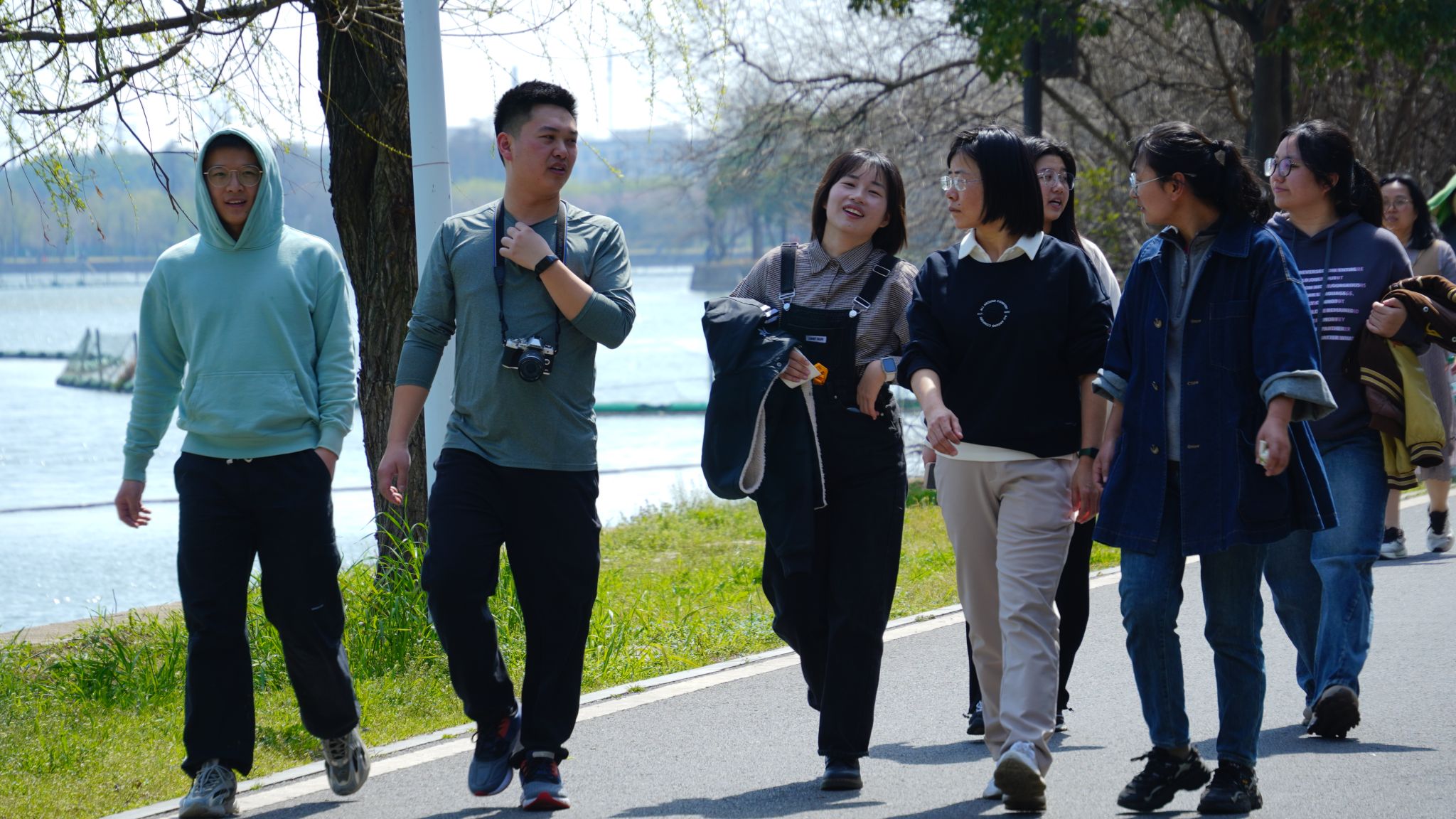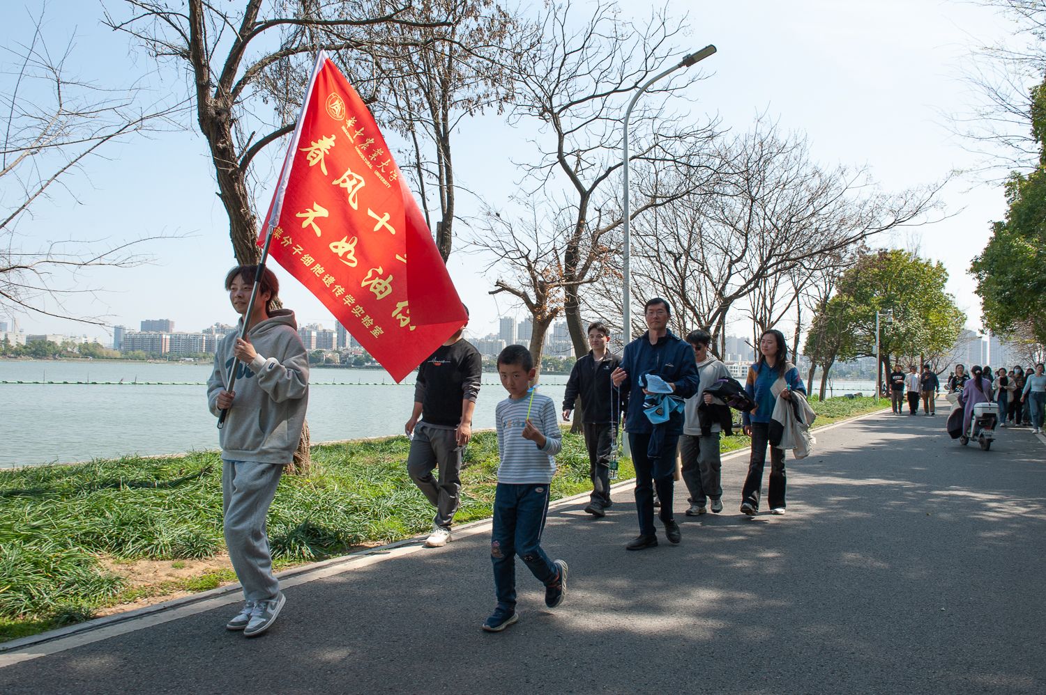 乐乐园补给点出发,便抵达南湖。春风轻拂,南湖的湖面波光粼粼,大家尽情享受着这大自然的美景,感受着春天的气息。行至狮山绿道,师生们或驻足小憩,或合影留念,记录下春日里的每一帧美好。