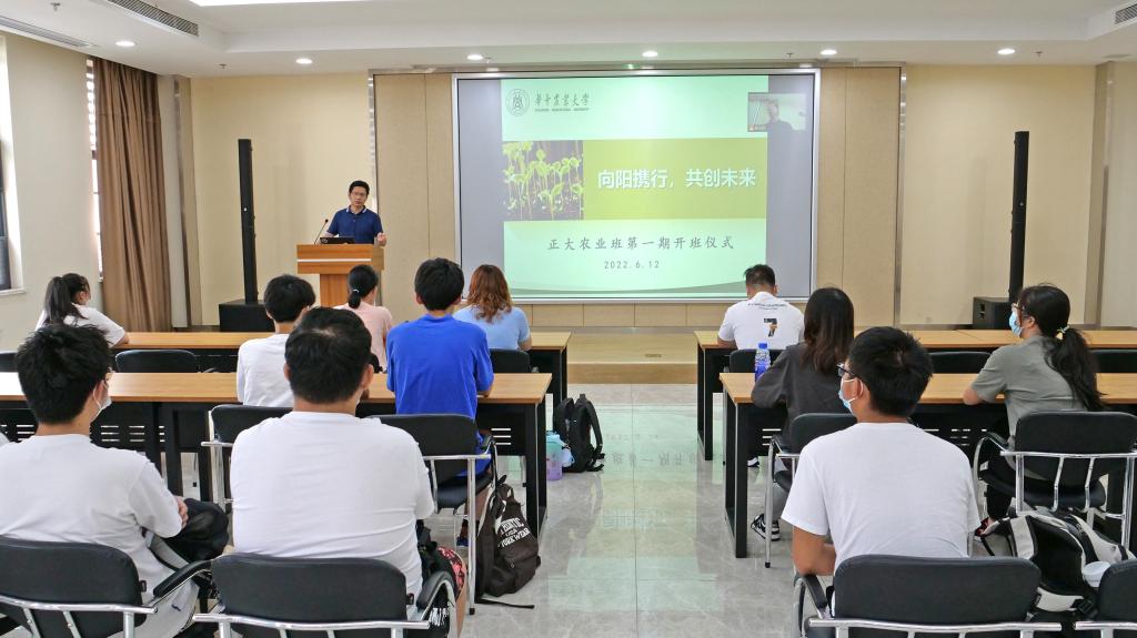 开班仪式上,襄阳正大农业开发有限公司销售总经理朱纪伟通过视频会议的形式与正大农业班同学们进行了亲切交流。他为大家详细介绍了襄阳正大集团的核心示范区,包括良种繁育中心、研究与服务中心、无人示范农场等地的具体情况,朱纪伟强调,“我们致力于无人农场的全方位综合管理和提高,不断发展智慧农场的数字化生产模式”,今后企业还将努力搭建智能生产、信息采集、远程智能监测、云数据处理中心、无人植保等平台。他希望正大农业班的同学积极充实知识储备,学习相应的农业、软硬件开发、物联网、数据分析与建模等知识,“努力做‘智耕种,慧管理’的农业企业人。”