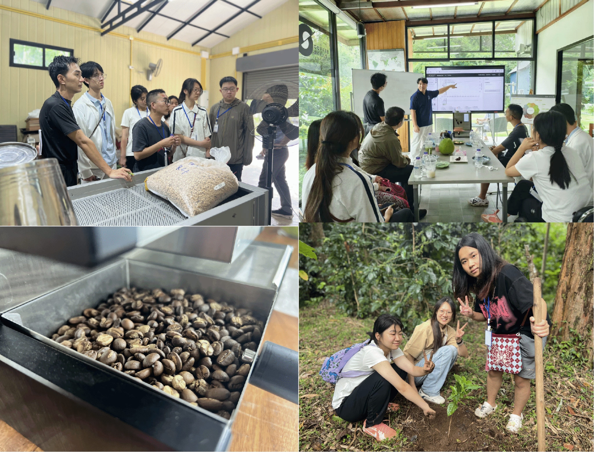 此外,同学们还重点调研了清迈优势农业产业——咖啡、榴莲、香米和牛奶的精深加工与全产业链开发模式。从田间管理、采收处理到产品研发与市场化策略,同学们不仅学习了关键技术环节,更对泰国农业的品牌构建与价值链提升有了系统性认识。
