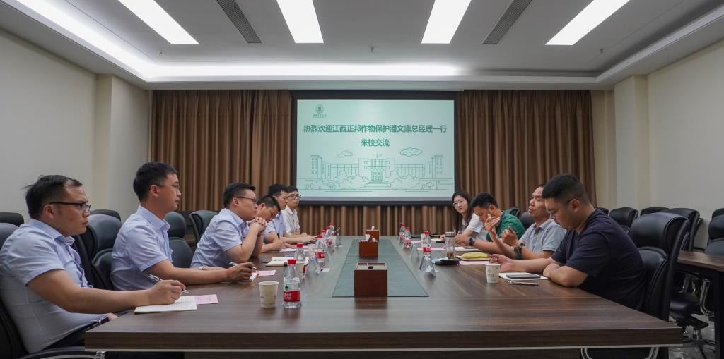 6月13日上午,江西正邦作物保护股份有限公司潘文康总经理一行5人来我院交流座谈。学院党委副书记孙超、副院长王满囷等参与交流。