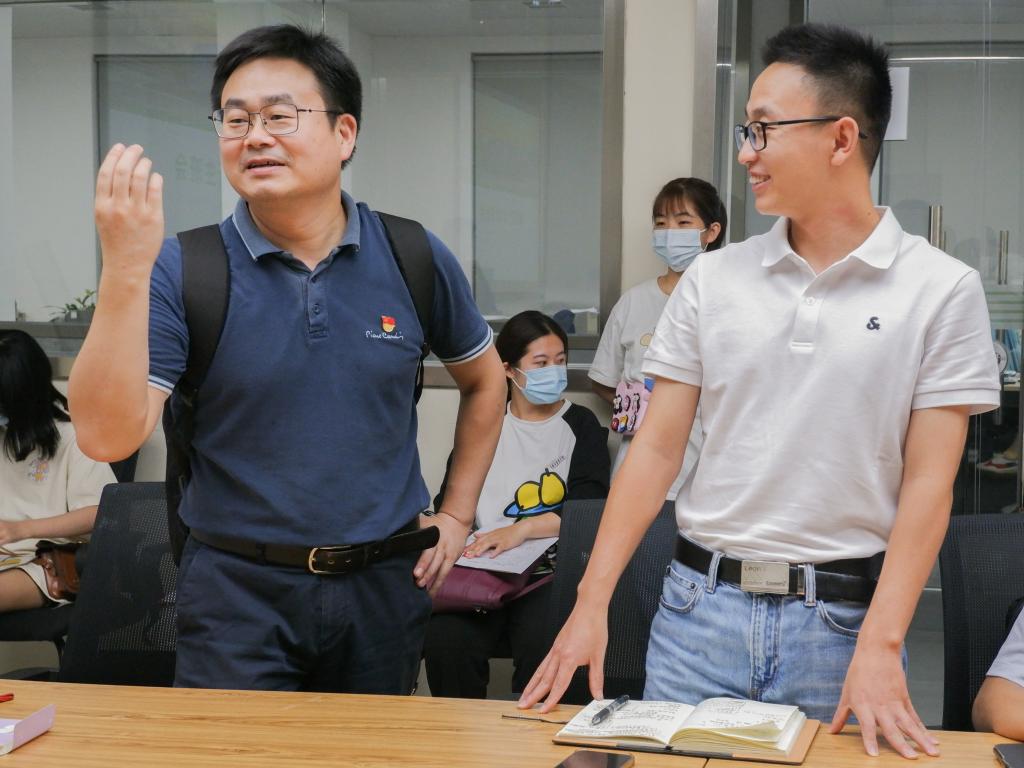 朱龙付深入各班班会,与新同学们亲切交流。他说道:“大家通过自己的不懈努力来到华农,拥有了一个新的身份——华农人,而如今坐到这里,更是拥有了一个崭新的身份——植科人。”他向新生介绍了植科院的专业特色与悠久历史:“我们院拥有着植物保护学和作物学两个一级学科,两个学科不仅历史和科研底蕴深厚,还始终围绕国家农业安全、粮食产业、国际合作等重要命题向时代看齐。”他引用习近平总书记在建党一百周年大会上的讲话对同学们进行勉励,表示希望同学们拥有“三气”:有志气、有骨气、有底气。朱龙付指出,专业不是限制大家梦想的束缚,而是为大家实现梦想,努力成长搭建的平台。他表示,希望大家在大学真正的成为一个“全人”,积极参与第二课堂,努力提升自身综合素质和能力,勇于承担责任与使命,真正做到“强国有我,兴农在我”!