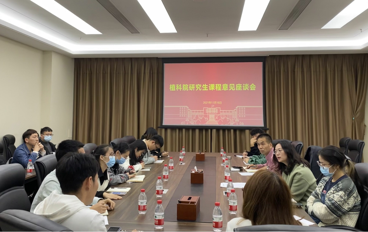 2021年11月16日上午,植科院围绕研究生教学课程建设为主题,在三综B308会议室召开研究生课程意见座谈会。出席本次会议的有研究生培养处处长祁婧老师、植科院副院长王满囷老师以及学生代表们。