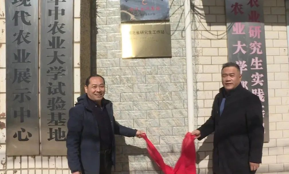 仪式上,植科院院长朱龙付与武穴市农业农村局局长李纲共同为研究生工作站揭牌。