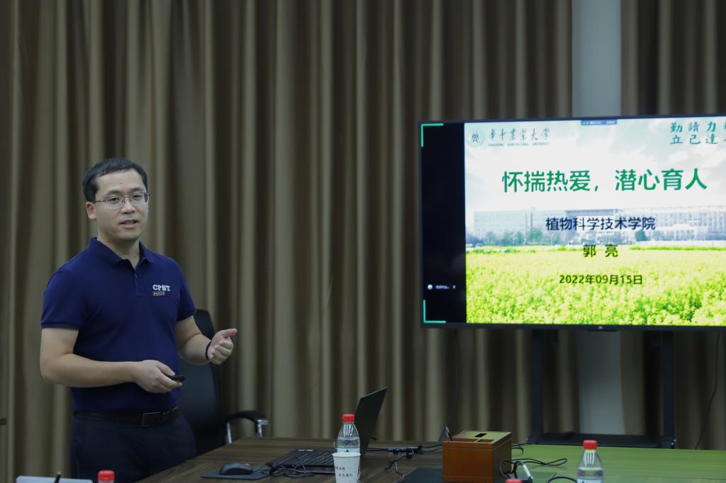 郭亮教授向大家讲述了他近十年的学习与工作经历。“我来校之前研究方向是生物学领域,并非是‘接地气’的农学领域。”他与在场青年教师畅快交流,“而刚好加入油菜团队,让我对未来充满期待。”“从产业需求出发,解决产业问题”是傅廷栋院士曾对他的要求,因此在最初组建实验室时,他花了大量的时间来思考研究方向、规划实验进程,也正是开始明确了清晰方向,他的课题组才能在几年的积累后取得一定成绩。“青年教师一开始就要明确研究方向、制定详细计划,持续学习,坚持思考,广泛开展合作。”他如是说到。