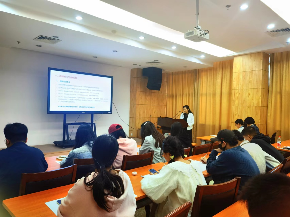 熊秋芳代表油菜团队对56名新同学选择油菜团队继续深造表示热烈的欢迎,她为大家介绍了油菜团队的发展概况、团队人才队伍、研究方向、研发条件、主要成就、学术影响、人才培养和油菜办公室人员分工等情况。我校油菜遗传育种研究始于上世纪50年代初,油菜研究室由刘后利先生创建,1962年,刘先生开始培养研究生,培养了新中国第一位农学博士,培养了傅廷栋、张启发、王汉中3位中国工程院院士,主持创制了学校作物遗传育种博士人才培养方案,“建设遗传育种专业,培养合格人才获得国家教学成果特等奖”。傅廷栋院士作为传承者,推动了我校油菜团队的快速发展,在油菜遗传育种研究、学科发展、人才培养、社会服务等做出了巨大的贡献。傅院士从事油菜研究60年,“由于发现在国际上第一个有实用价值的油菜波里马雄性不育类型,对杂交油菜的发展作出杰出贡献”,被认为是“国际杂交油菜的学科带头人”。他开创了油菜杂种优势研究与利用的先河,目前油菜多功能利用、高油酸油菜、抗根种病油菜、板蓝根油菜等研究方向都是傅院士根据新时代油菜发展趋势以“科学大咖”的战略越眼光提出的。近年来,油菜团队还为各级政府建言献策,多次获得国家、省级领导人的批示。