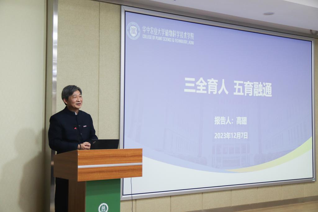12月7日下午,校党委书记高翅应邀作“三全育人,五育融通”专题辅导报告,植科院全体教职工参会学习。报告由植科院党委书记周雄主持。