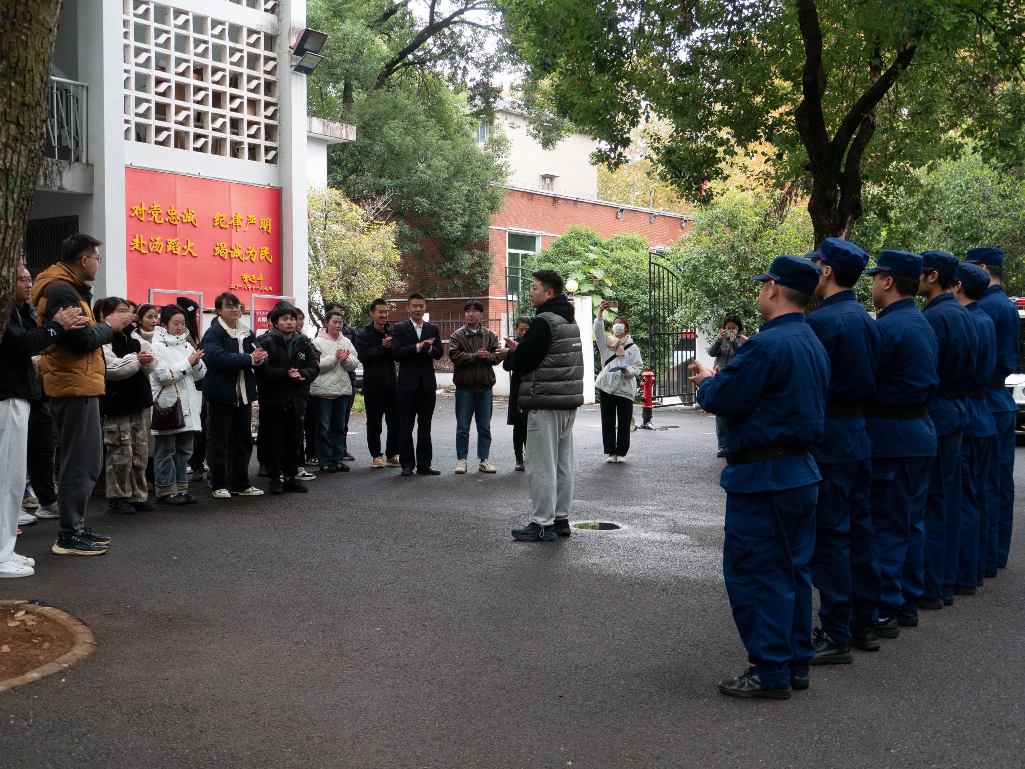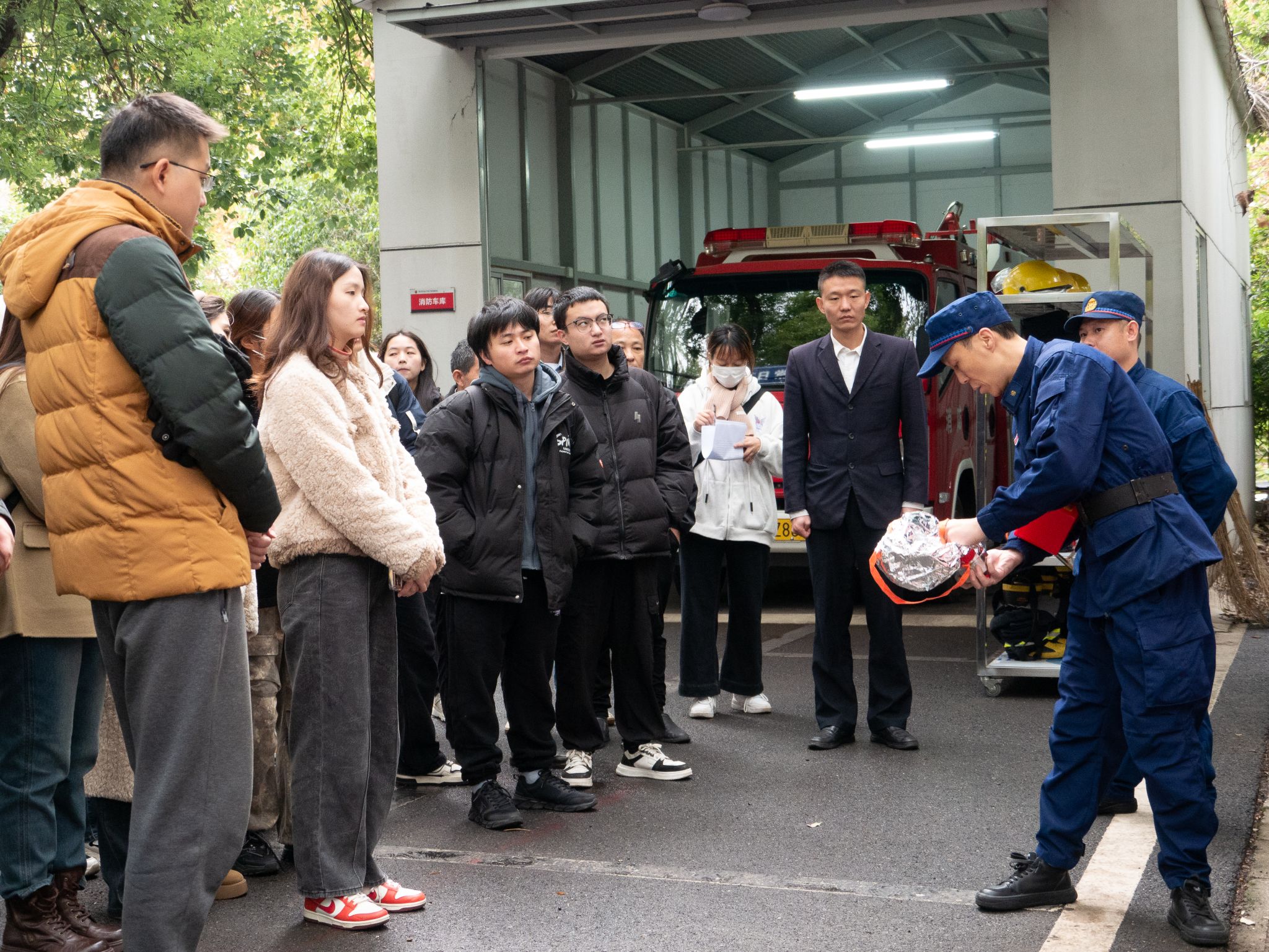 我院师生参观校园消防站