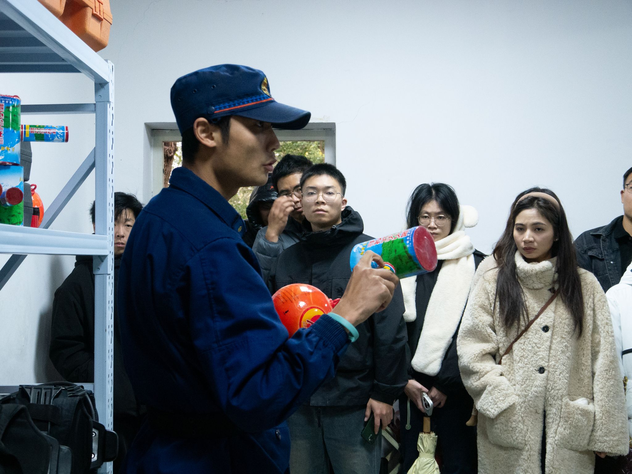 师生们参观了消防站内一系列消防装备,包括常见的消防车、灭火器、消防服和消火栓,以及照明灯、安全绳、灭火毯和消防扳手等。消防员逐一展示了这些装备的用途,还详细介绍了几种常用灭火器,如二氧化碳灭火器、泡沫灭火器、干粉灭火器、七氟丙烷灭火器等,并向师生强调,在面对火灾时,选择合适的灭火器至关重要,使用时必须根据具体的火灾类型和现场情况做出判断,切勿盲目使用。