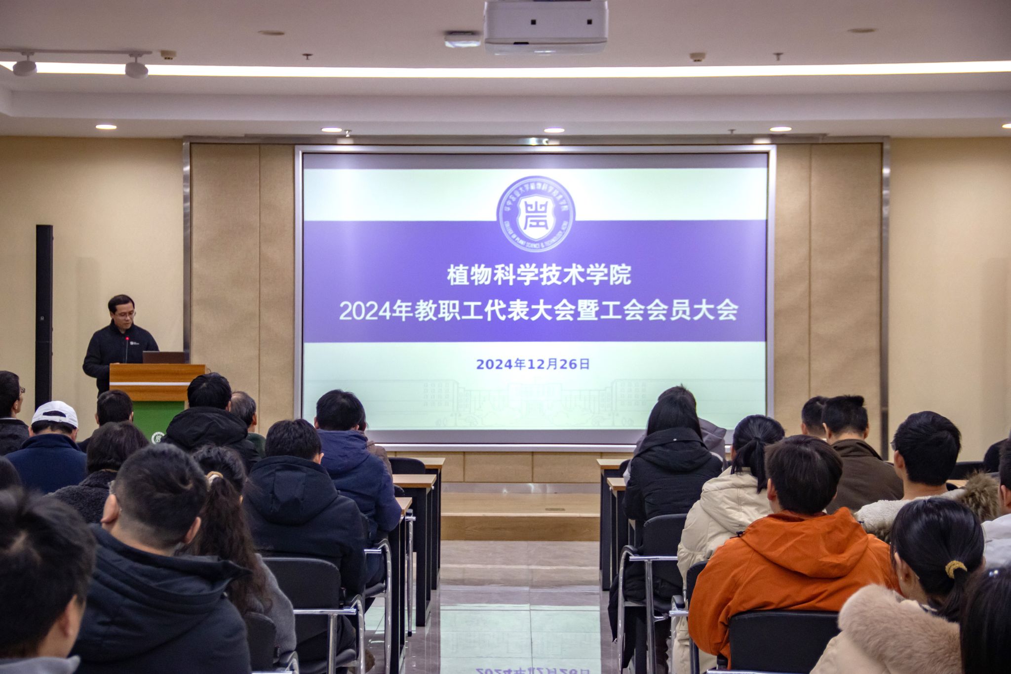 12月26日下午,学院教职工大会在第三综合楼A705举行。全院教职工参会,会议由学院党委书记周雄主持。