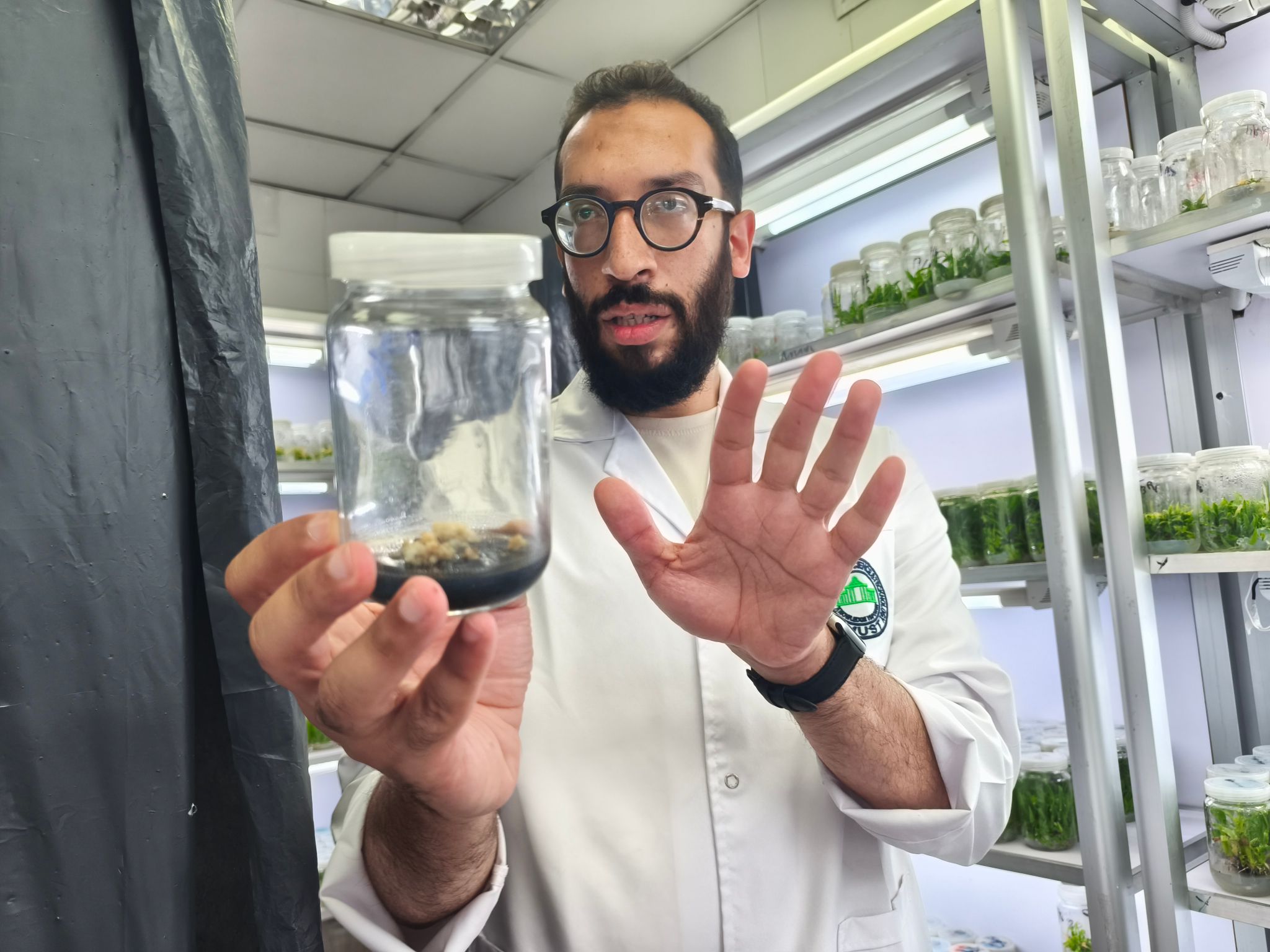 埃及科技大学老师向实践团介绍植物组培 王玥棋摄