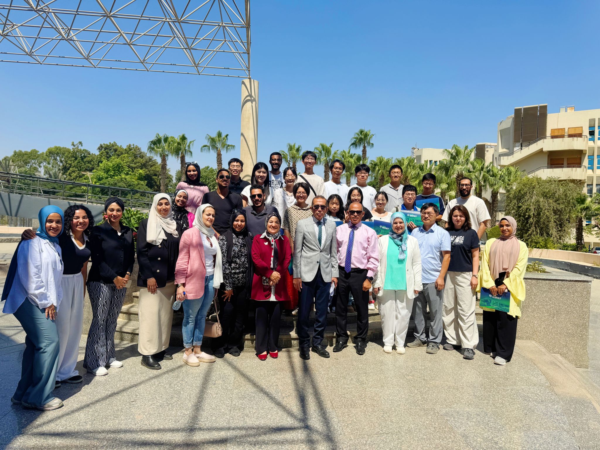 从奔腾的长江之畔至蜿蜒的尼罗河沿岸,一场跨越地域与文明的学术交流于埃及盛大展开。7月25日至8月5日,学院教授胡学博、辅导员买合巴率13名学生,赴埃及科技大学开展以“一带一路与青年交流”为主题的访学活动。师生通过学术研讨、文化体验与实践考察,深入了解了埃及的科研进展、历史文化与社会发展,为两校进一步深化合作奠定了坚实基础。