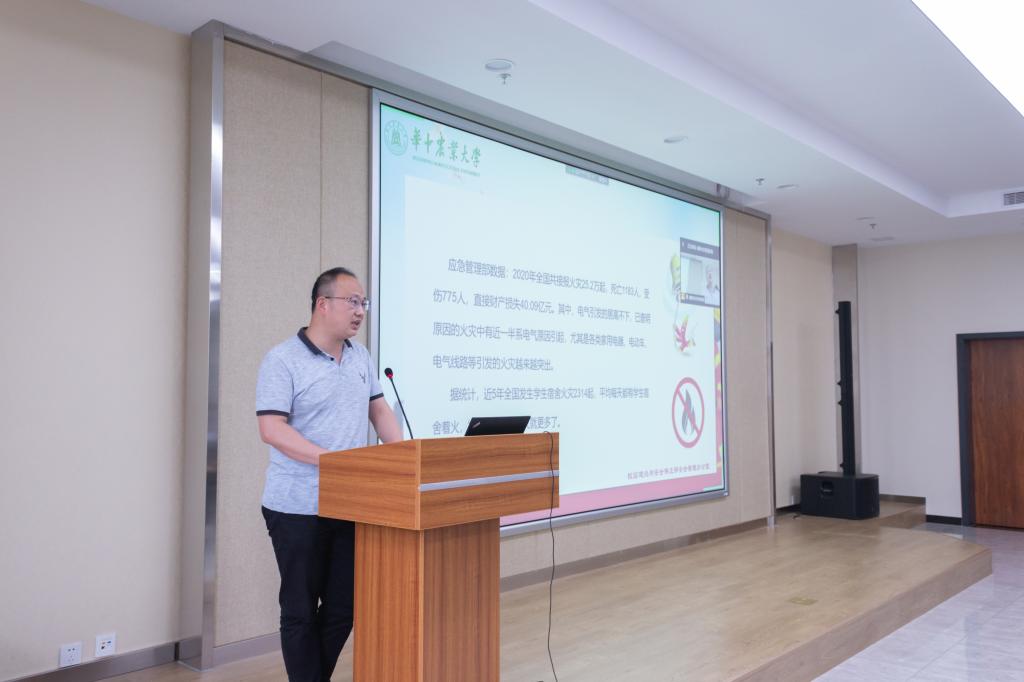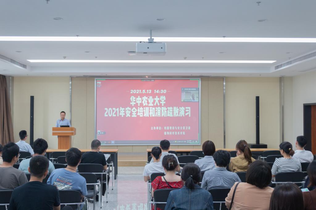 在安全知识培训环节,校园建设与安全保卫部安全管理办公室黄青松从消防安全知识和实验室安全管理两个方面进行了讲述。他介绍了近5年全国火灾数据及我校19年以来的火险情况,并重点围绕防火基本知识、高校火灾原因分析、火灾的预防与管控、火灾事故处置、火场逃生与疏散、消防事故责任追究等6个方面的内容进行培训。对于火灾预防与管控,黄青松谈到,每名师生都应掌握“四懂四会”的消防常识。针对火灾现场逃生问题,黄青松讲解了9个要点,并借鉴典型案例详细介绍火灾责任事故认定的具体流程。植科院副院长姜海代表学院领导班子对全体师生做安全工作的再动员,从提高认识、落实责任、全员参与以及重点难点工作等方面提出具体工作要求。
