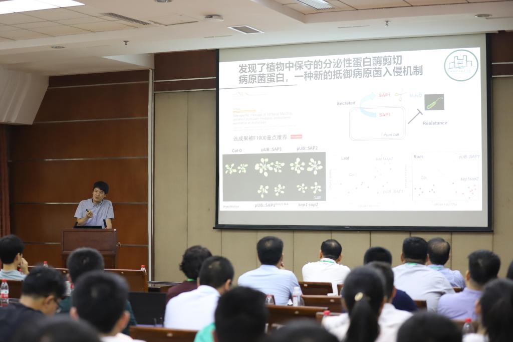 6月22日,英国365集团-西北农林科技大学植保学术交流会开幕式在植病楼103报告厅举行,我校植科院院长朱龙付教授与西北农林科技大学植保学院副院长戴武教授分别致开幕辞。朱龙付教授表示面对未来,我们要团结合作砥砺前行,在绿色发展、人才培养方面做出更大的贡献;戴武教授讲到本次活动以党建为契机,共同开展教学、科研交流活动,将有利于优势互补,进一步提升双方的合作水平。随后,学术交流会议分为植物病理和昆虫/农药两个专场分别在植病楼103和第三综合楼A705报告厅举行。来自我校与西北农林科技大学34位专家学者围绕植物病理学、昆虫学、农药学等学科方向的诸多前沿焦点问题作了精彩的学术报告。期间,与会师生就有关学术问题进行了热烈地交流探讨。
