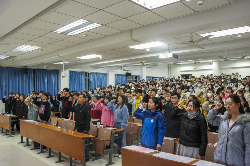 12月6日晚,我院于三教C205 召开 2021 年下半年新发展党员入党宣誓大会,植科院党委组织员马平福、辅导员张涛、81位新发展党员、植科院全体本科生党员以及入党积极分子代表参加大会。大会由张涛主持。