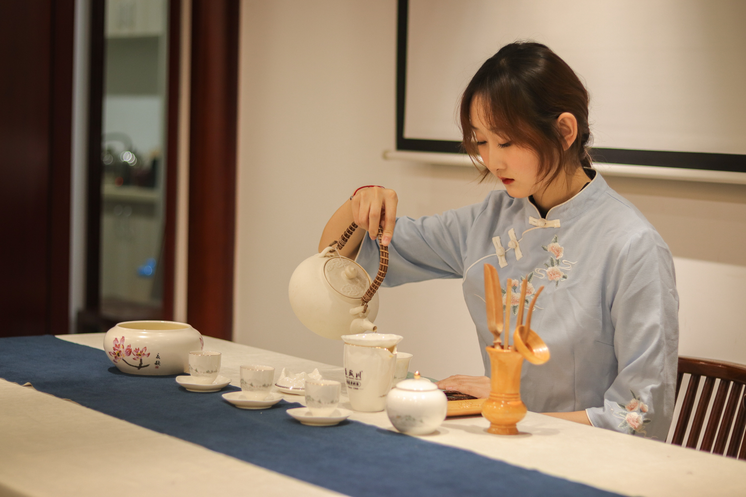 主持人曹雅婷还为大家补充介绍了不同茶的冲泡方法。她特别分享到,活动为大家准备的茶水是由“利川红”泡制而成的,而“利川红”是习主席和印度总理莫迪在武汉东湖一同品尝的茶。