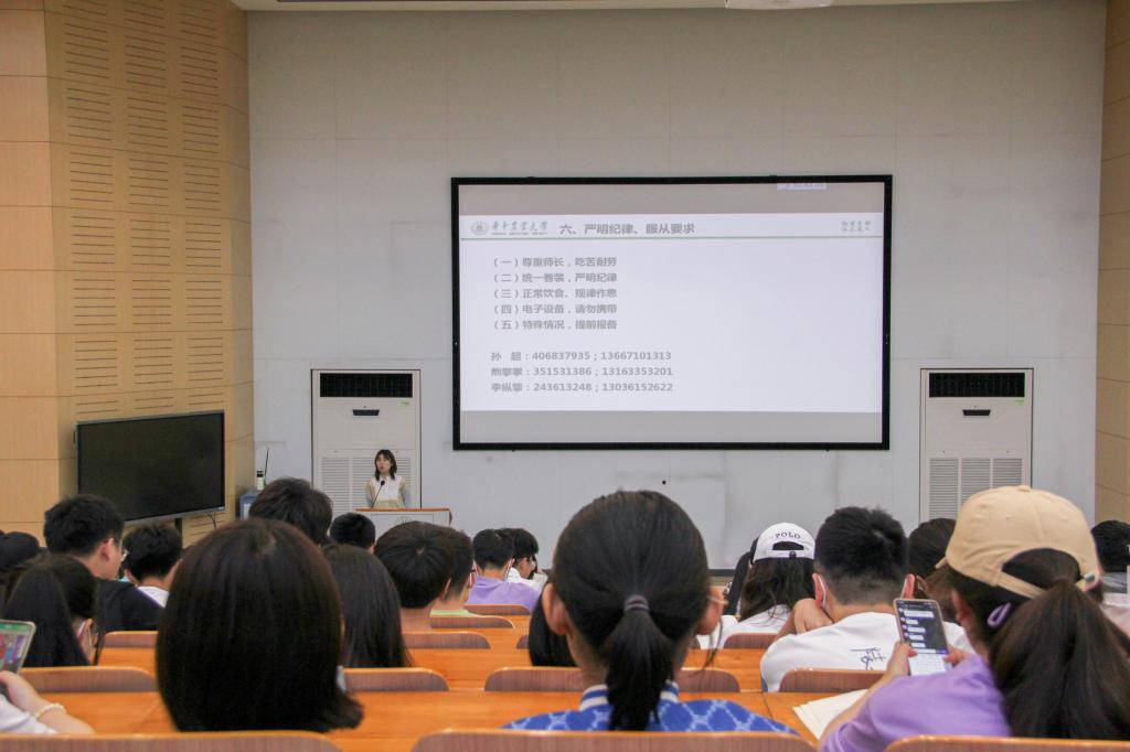 最后,李纵擎提出军训五点要求:尊重师长,吃苦耐劳;统一着装,严明纪律;正常饮食、规律作息;电子设备,请勿携带;特殊情况,提前报备。