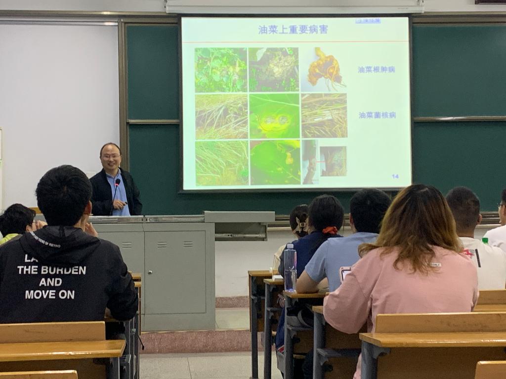 本次示范课由2021年课程思政示范建设项目结题优秀的项目负责人程家森教授主讲,课程为《普通植物病理学》。程老师从植物病害控制的生态观、安全观等方面入手,深入浅出讲解如何做到准确、高效、经济、安全的植物病害防控。以油菜上重要病害为例,图文并茂解读李国庆教授、姜道宏教授、谢甲涛教授等对病害防治工作的投入以及其中蕴含的价值取向,引导学生在学习病害防治策略和技术的过程中深入思考,领悟感受预防为主、综合防治、公共植保和绿色植保的现实意义,强调自然控制作用和可持续发展,树立正确的植物病害控制的生态观和安全观。以油菜茎基溃疡病在加拿大大面积发生为例,让同学们认识到植物检疫和植物病害控制的重要性和必要性。同时提出问题“国外因病虫害禁止进口中国农产品怎么办?”,引发同学们站在国家层面上思考问题,拓展视野,一步一步加大思考的高度和广度。