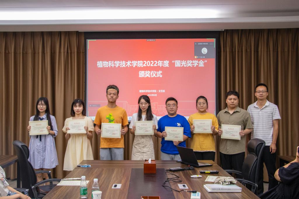 69日下午,学院举办2022年度国光奖学金颁奖仪式。获奖学生代表、各年级学生代表200余人通过线上线下参加活动。四川国光农化股份有限公司作物技术部部长张江文、四川国光园林科技有限公司湖北大区经理来显岗,学院党委副书记孙超参与线下活动。