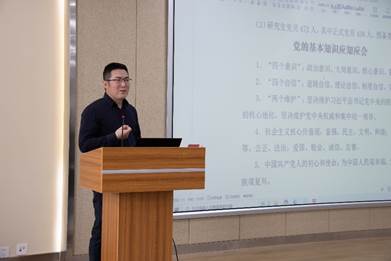 首先,陈志强老师以教工党支部建设工作为例,从“学什么”“主题党日”“主要工作”等方面为大家就如何开展党建工作做出了讲解。对于研究生支部的建设工作,他提出了三点建议:一要立足支部书记本职,带领支部成员融入学校文化之中;二要把支部工作落到实处,忌形式主义;三要从实际党建工作出发,从支部层面解决支部内的问题,做好党支部的团队建设。