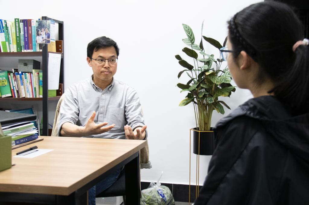 座谈会伊始,汪波对来访的同学表示欢迎,并讲述了他自己的求学、科研和从事班主任的经历。谈及他的科研经历时,汪波分享到,求学途中研究方向改变后,自己突然发现周围人都很优秀“刚开始觉得压力很大,自信心也受到打击。但是我主动走出自己的舒适圈,坚持挑战自己后,精神状态比之前有明显的提高”,他继续说道:“我之所以严格要求我的学生,要求他们始终抱有挑战自我的决心,是因为我自己曾走过弯路,不希望他们再重蹈覆辙而遗憾后悔”