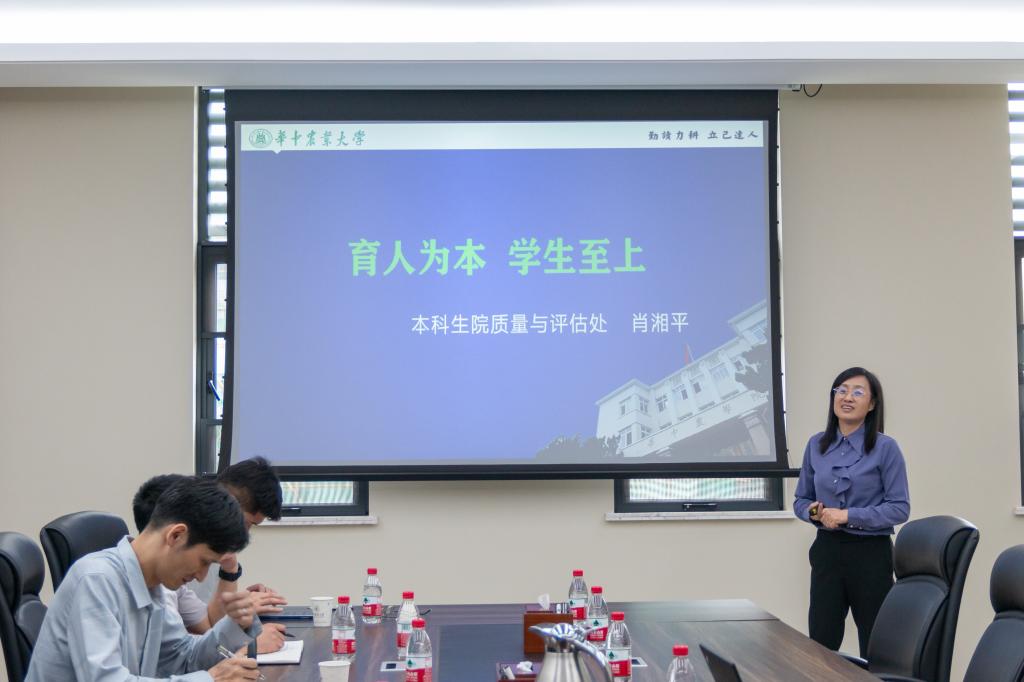 518日下午,学院邀请本科生院质量与评估处处长肖湘平、实践教学管理处处长刘震于三综B308会议室开展关于“专业、课程、教材等相关教研教改、学生创新创业、实验教学等项目申报和执行工作”的专题培训。党委书记周雄,副院长罗朝喜出席会议。