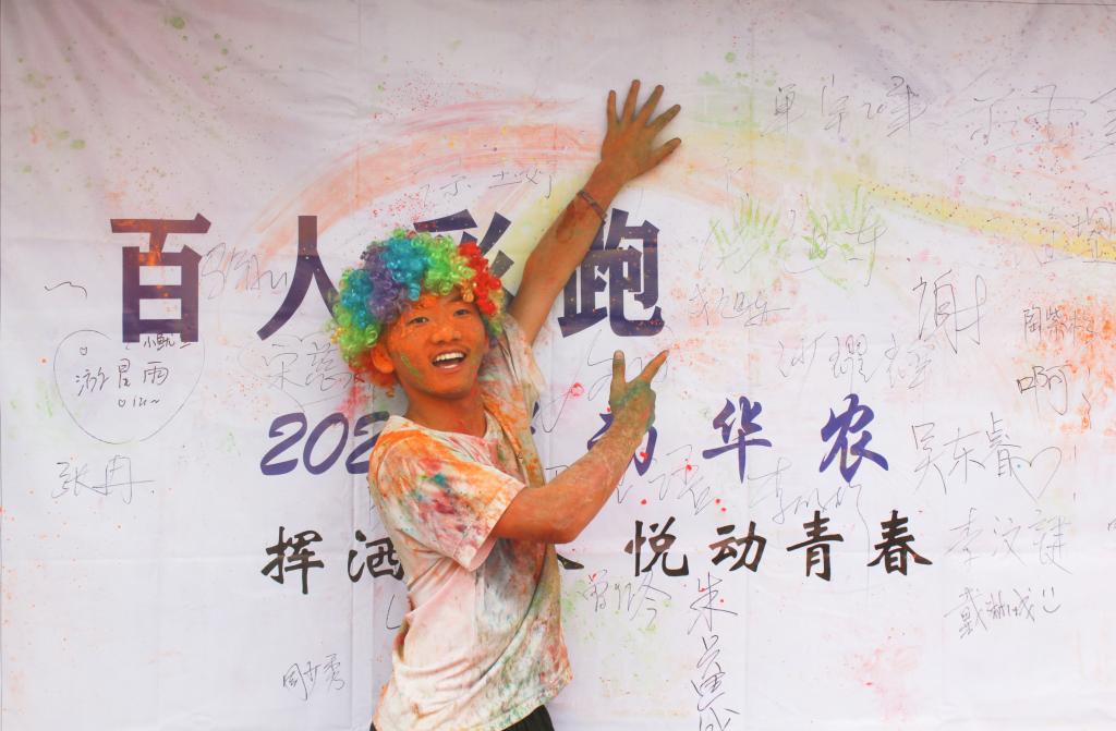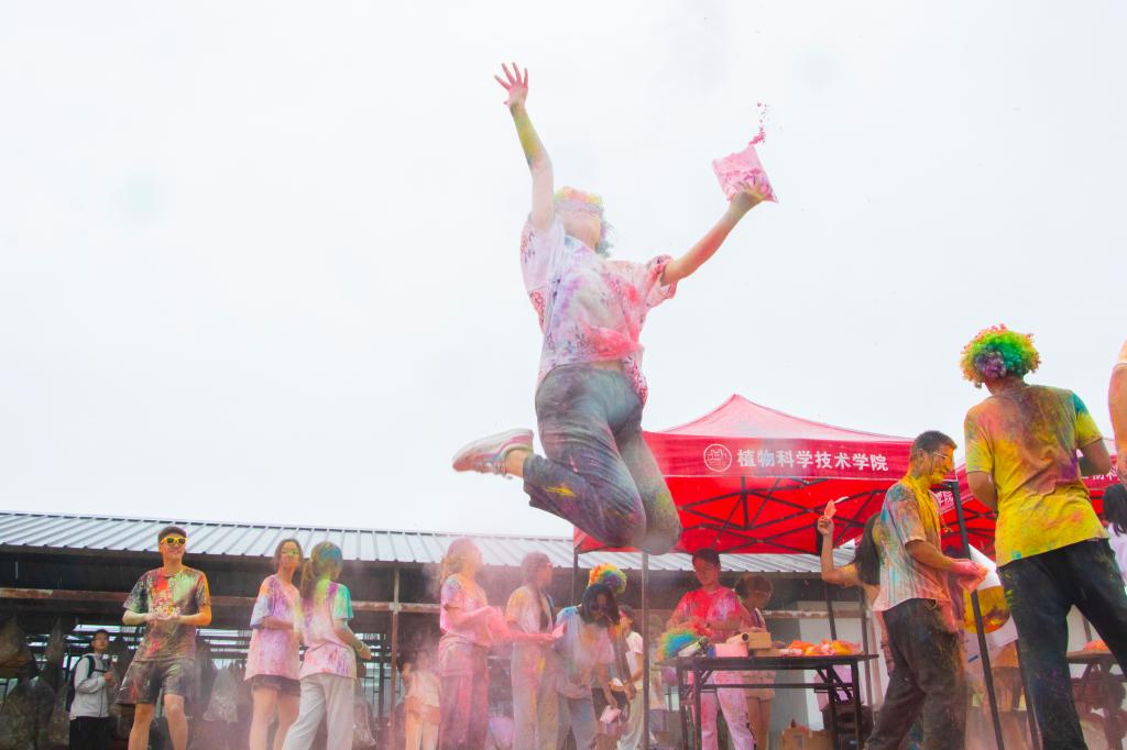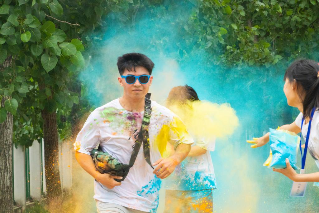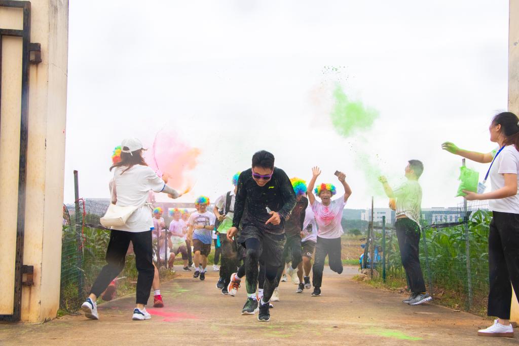到达终点后,主办方为所有参与者发放了彩虹粉,供大家肆意玩耍。大家都肆无忌惮地喷洒着手中的彩虹粉,一时间,玉米基地变成了一个大型欢乐海洋,彩色的玉米粉描绘出一道道彩虹,明亮了整个天空。举办本次彩虹跑的目的,负责人杨宇杰这样说,彩虹跑活动就是一个集健身娱乐为一体的活动,我们已经策划了很久,充分利用华农可食用的无害玉米粉制成彩虹粉,让大家体会不一样的运动,彰显华农的特色,跑出华农未来的无限可能!