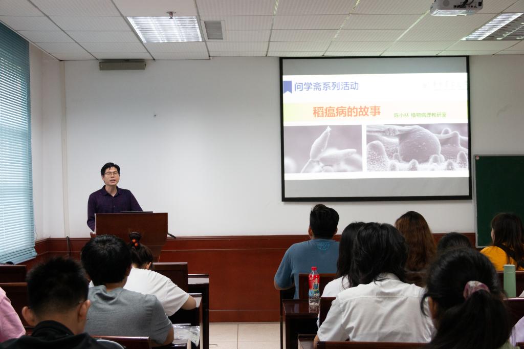 5月27日下午,植科院“问学斋”系列活动第二百五十九期于分子楼116会议室如期举行。来自植物病理教研室的陈小林老师热情地与大家分享了他的求学经历、科研故事与人生感悟,并简要介绍了与稻瘟病有关的知识以及他目前的研究成果。