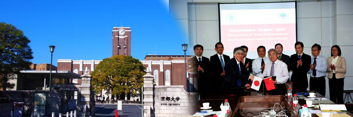 After College of HorticultureForestry Sciences signed an agreement on personal training cooperation with Kyoto University in March this year, the delegation led by Nawada Eiji, the minister of Agriculture Department visited our university and signed agreements on academic exchanges and cooperation. President Deng Xiuxin, Vice-president Zhang Xianlong and leaders from Student Affairs Office, Teaching Affairs Office, College of HorticultureForestry, International affairs Office and Graduate School attended the signing ceremony.