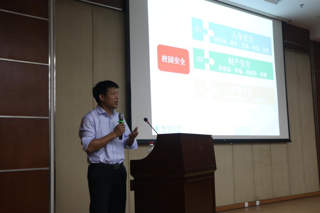 Then Mr.Liu Wenkui conducted safety knowledge training from four aspects: personal safety, property safety, fire safety and national security. Combining with typical cases summarized in his daily work, Liu explained how to prevent safety problems like stealing, robbery, drowning, sex invasion, fire, traffic, fraud and pyramid selling in the form of pictures and video. In particular, he stressed the hidden dangers of fire safety caused by inferior electric appliances, unmanned recharge and illegal use of high-power electrical appliances. At the same time, the basic self rescue knowledge and self rescue method when besieged by fire were also introduced. In the anti-theft and fraud part , he said that everyone should be vigilant and be ware of fraud.Do not believe “Pennies from heaven” and learn to develop good habits of keeping the money properly.