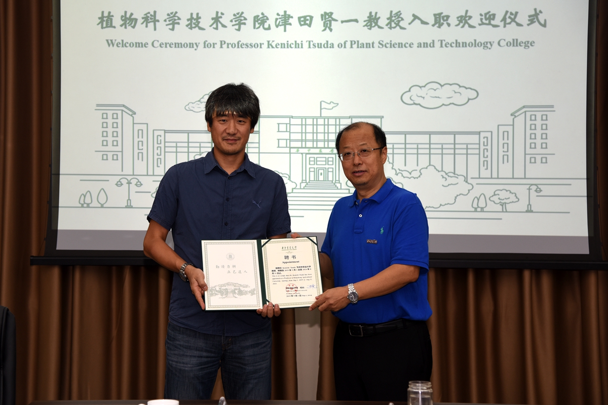 On the afternoon of September 1, the Japanese scholar Kenichi Tsuda was hired full-time by the College of Plant Science and Technology of Huazhong Agricultural University, and the ceremony was held in conference Room 308 of the third complex building. President Zhaohu Li attended the ceremony. He warmly welcomed Professor Kenichi Tsuda to join the family, Huazhong Agricutural University.