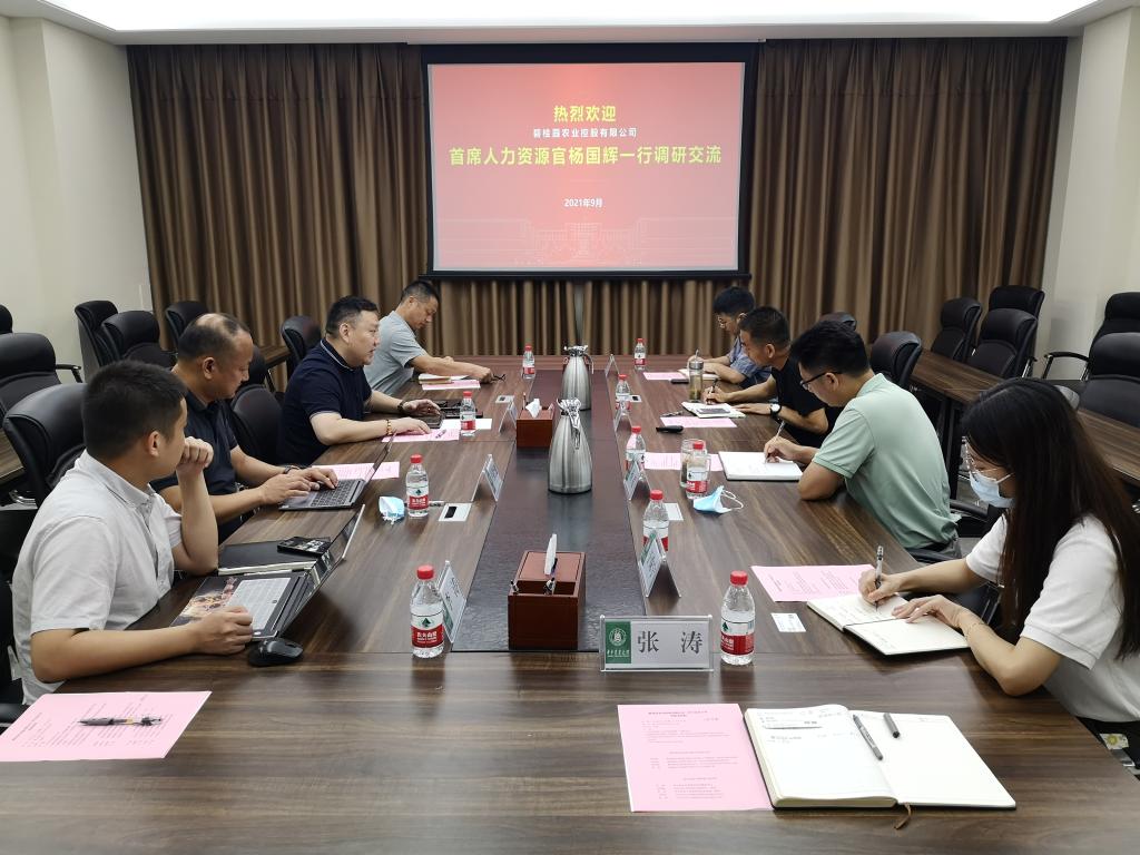 9月28日上午,碧桂园农业控股有限公司综合管理部总经理杨国辉、农业科技园高级销售经理冉松池、资深育种工程师杨祖荣以及人力资源主管李涛一行来访我院,在第三综合楼B308会议室开展校企合作交流会,植科院党委副书记孙超、副院长王满囷、院长助理李林、研究生就业负责人于姝宁以及本科生负责人张涛出席会议。