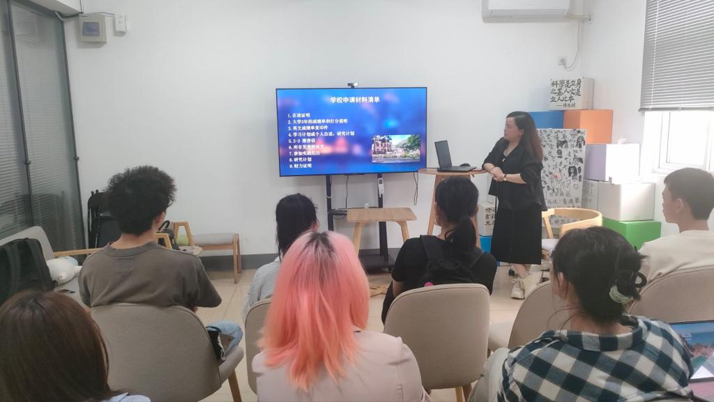 10月10日下午,学院于荟园学生社区驿站H7-200活动室举办出国留学宣讲会,新思达国际学校胡琴老师受邀向同学们全面介绍出国留学相关事宜并解答相关疑问。