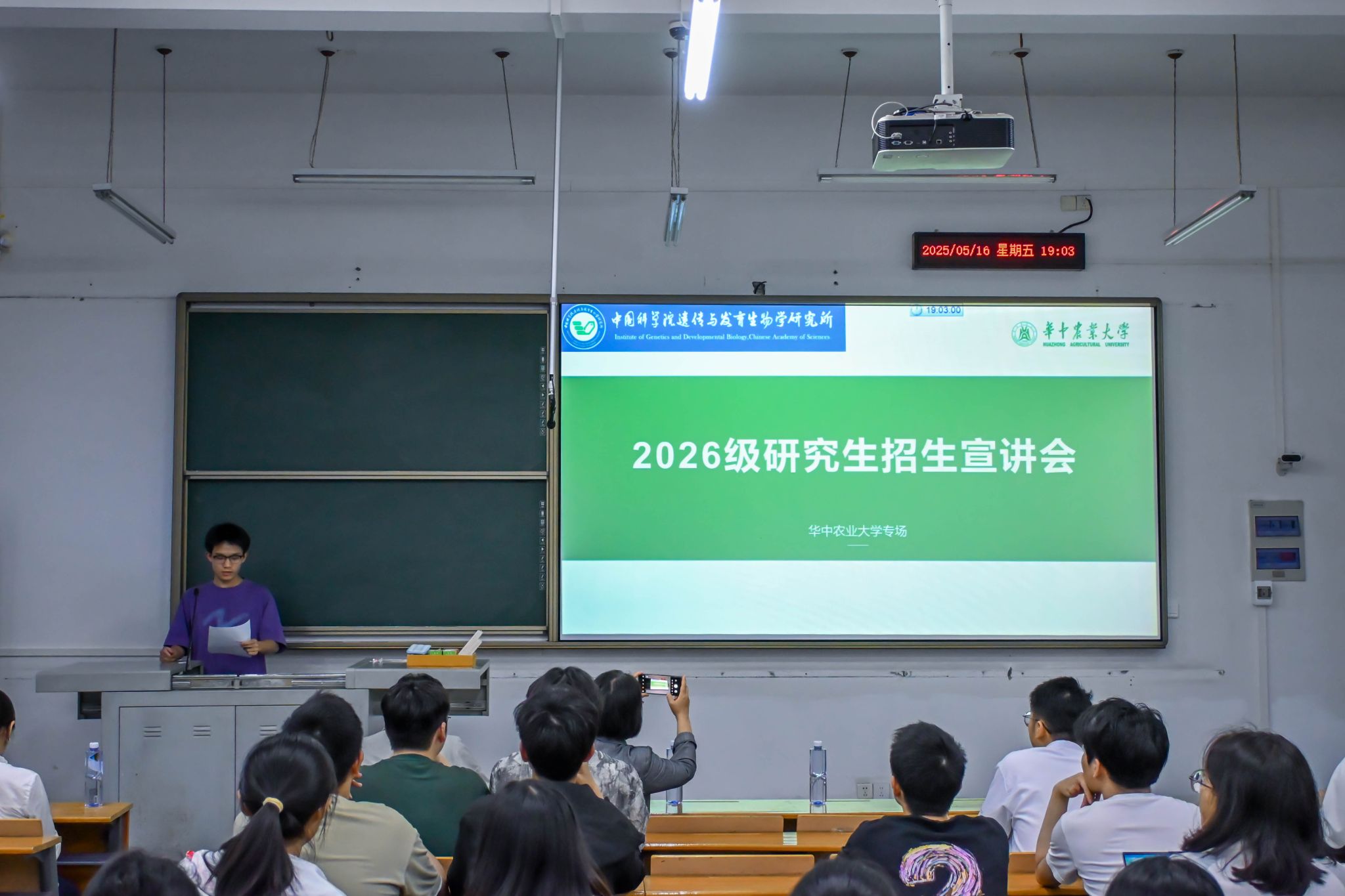 5月16日晚,中国科学院遗传与发育生物学研究2026 级研究生招生宣讲会于四教C111成功举办,活动吸引了我院、生科院和动科动医学院等学院80余名本研学生积极参与。