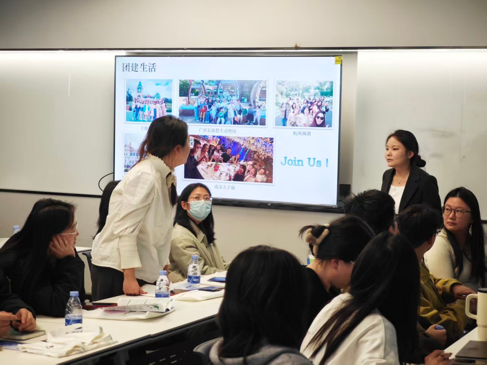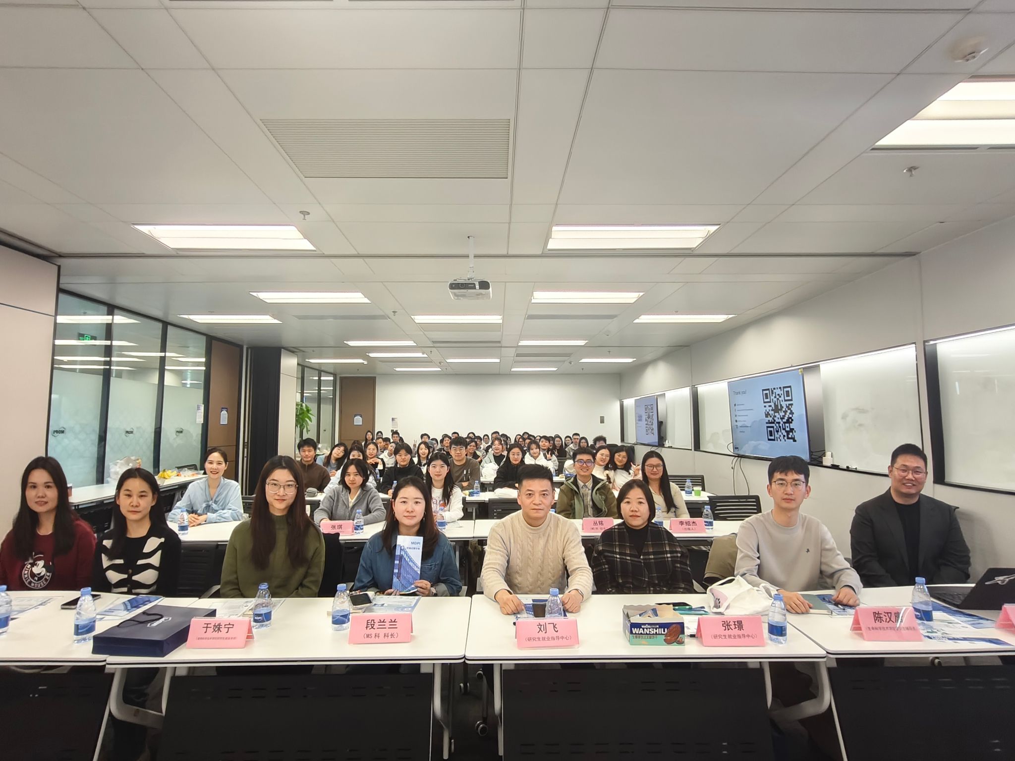 公司全面介绍了MDPI发展历程、组织结构、福利待遇等方面,并详细解读热招岗位及晋升通道。通过入职半年、三年以及九年的三位不同梯度校友的经验分享,包括日常工作内容、晋升路径、工作体验等内容,与会同学明晰了入职公司后的成长路径。期间还穿插了多轮趣味问题互动,同学们积极参与,现场氛围十分活跃。