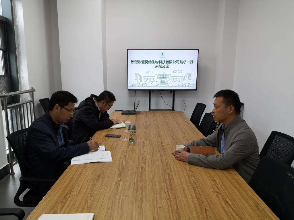 3月15日下午,莫纳生物科技有限公司技术总监陆青来我院座谈交流,我院党委副书记孙超、研究生辅导员李志强、本科生辅导员张涛参加交流。