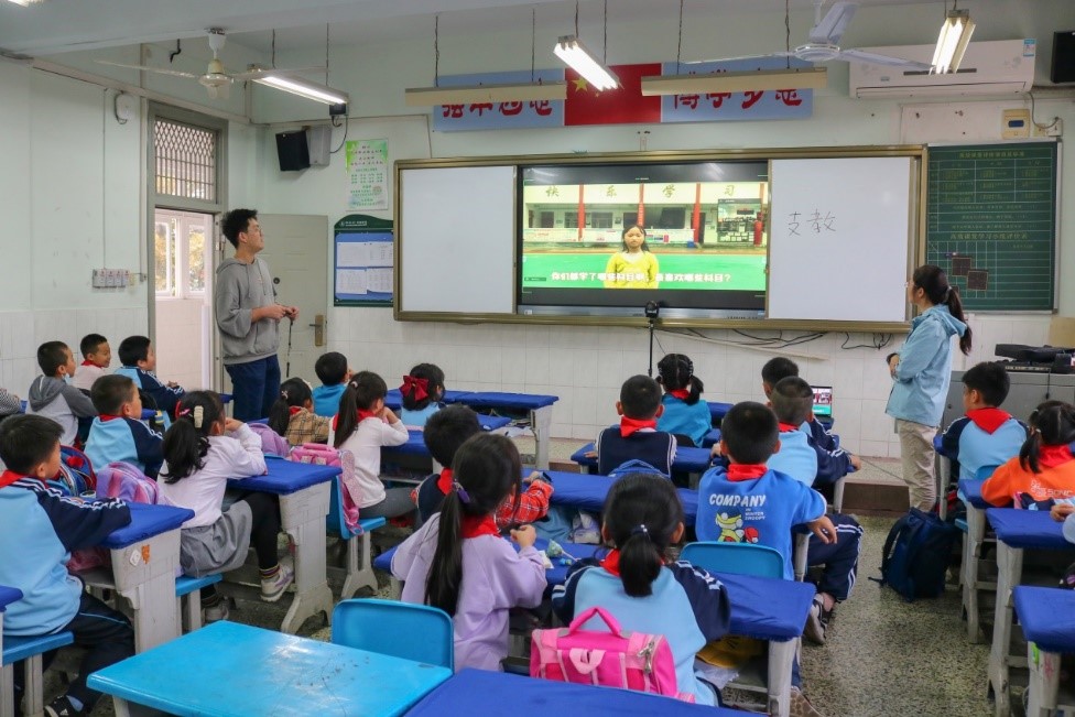 植物病理教工党支部肖雪琼副教授和曾赴摩峰中心小学支教的薛镜瑞向屏幕两边的孩子们讲述了他们对“支教”的理解:“支”代表着支援和志愿,“教”代表着教育和引导,他们真诚地希望能发挥党员先进性的身份,帮助摩峰中心小学的孩子们认识、了解外面的世界。他们还鼓励现场的小朋友们争当小小志愿者,热心帮助身边人。