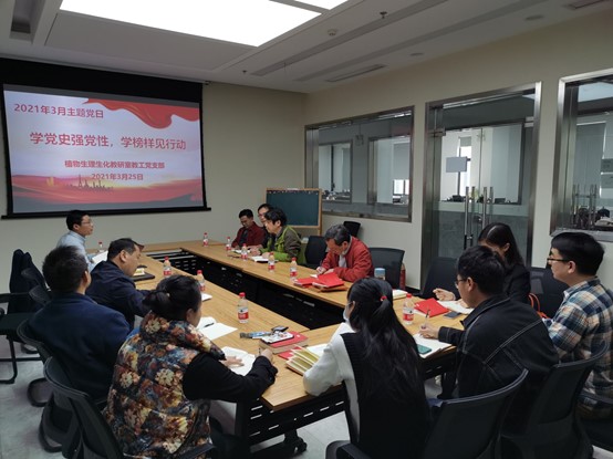 2021年3月25日下午16:30,生理生化教研室教工党支部在三综C502开展主题为“学党史强党性,学榜样见行动”主题党日活动。