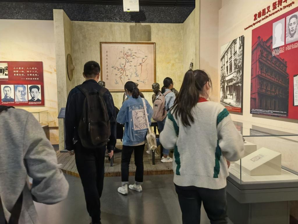 第一、二、三、六、七、九、十、十一小组的学员们前往长江旁的武昌中央农民运动讲习所旧址纪念馆。在讲习所的大教室里,他们坐在长椅上端正身姿,正如当年听着毛泽东主席讲授《湖南农民运动考察报告》的工农同志一样。他们仔细参观了讲习所的角角落落,仔细学习了《武昌农讲所的招生简章》、《中央农民运动讲习所规约》以及农讲所学员们镇压麻城暴乱的故事。在中国共产党纪律建设历史陈列馆,他们被习近平总书记“不管级别有多高,谁触犯法律都要问责,都要处理,我看天塌不下来”的话语深深感动,也让他们直观地感受到党带领全国人民一步步走向伟大胜利的来之不易。
