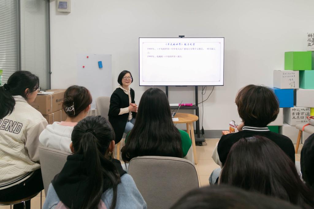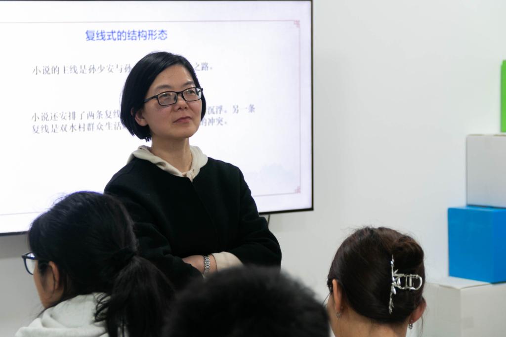 随后,袁琳介绍了《平凡的世界》的创作背景和内容。她谈到,路遥为了作品创作耗尽了心血,“路遥写作期间以汤药续命,从西安搬到偏僻的地方,专心致志写作,花费6年时间才完成一百万字的《平凡的世界》。”她提到,书中有关农民生产劳动、民俗文化、官场政治等描写都是建立在他个人的所见所感。路遥在前期准备阶段不仅大量阅读国内外优秀作品,还深入城市、山村乃至煤矿厂了解真实情况,这种“读万卷书,行万里路”的求真态度和脚踏实地的精神,为路遥的写作打下真实的底色,“这种真实感正是《平凡的世界》最能深入我们读者内心的力量所在,路遥先生的所作所为值得我们所敬佩。” 袁琳老师动情地说道。