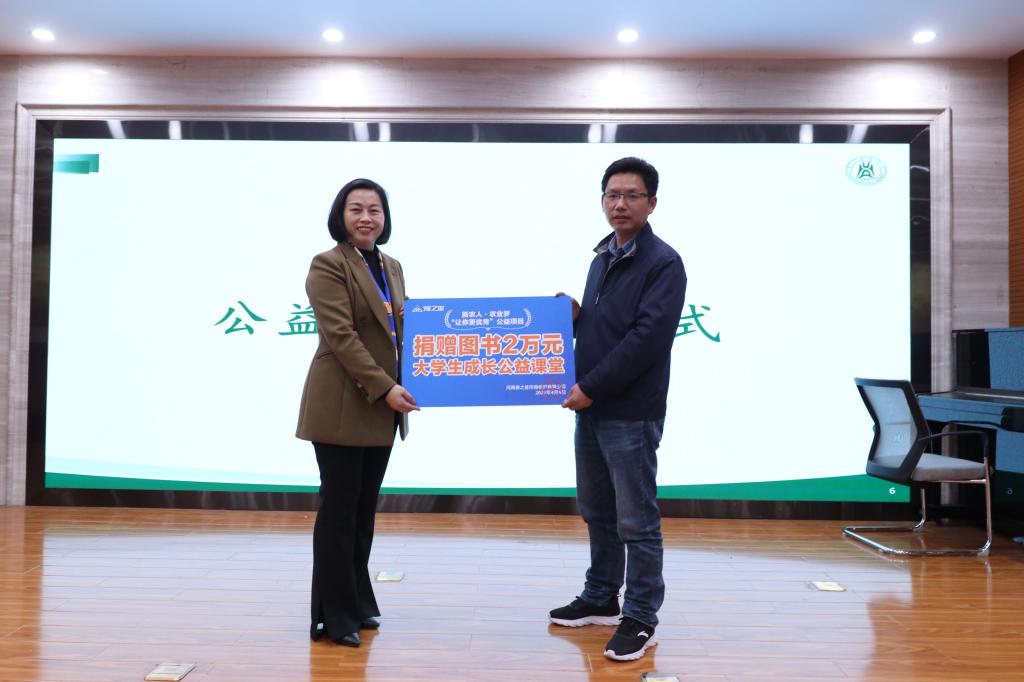 王会平表示,河南豫之星作物保护有限公司是国内专业的农药企业。新农人·农业梦“让你更优秀”公益项目起源于豫之星的企业文化,“工作可以没有成果,但不可以一日不读书”,王会平说道,“正是学习文化成就了豫之星的发展,也让豫之星的人才充满竞争力。”她表示豫之星将会努力承担企业的社会责任,深化校企合作,丰富交流方式,为培养高素质人才,助力每一位学生成为灿烂星空中的明星做出贡献。