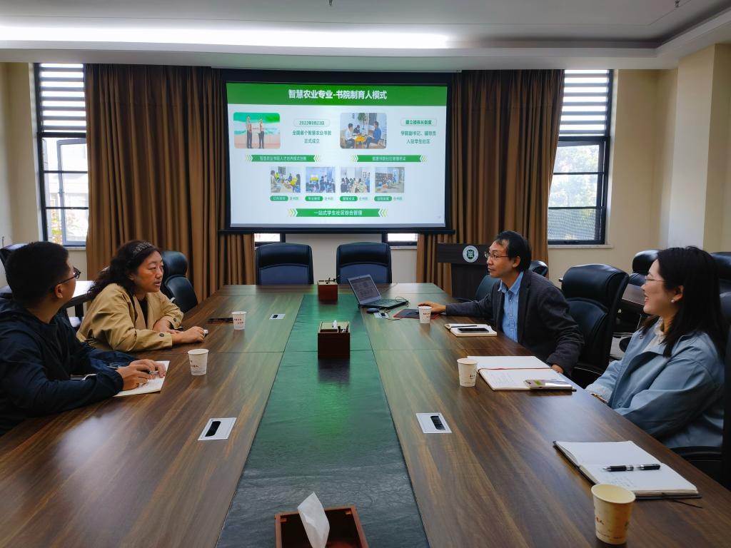 11月8日,西南大学创新创业学院副院长青玲、植物保护学院副教授吴根土一行4人赴书院调研智慧农业专业建设。