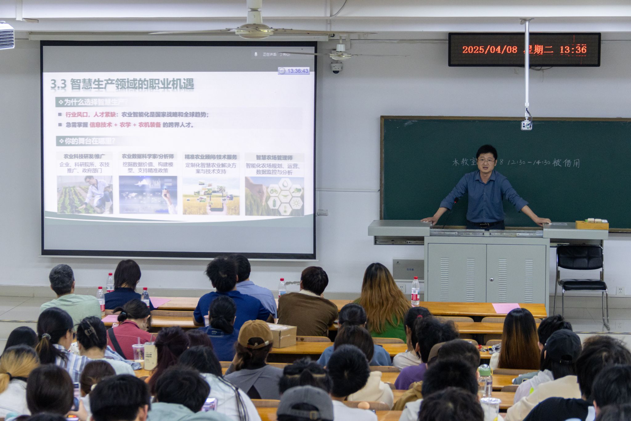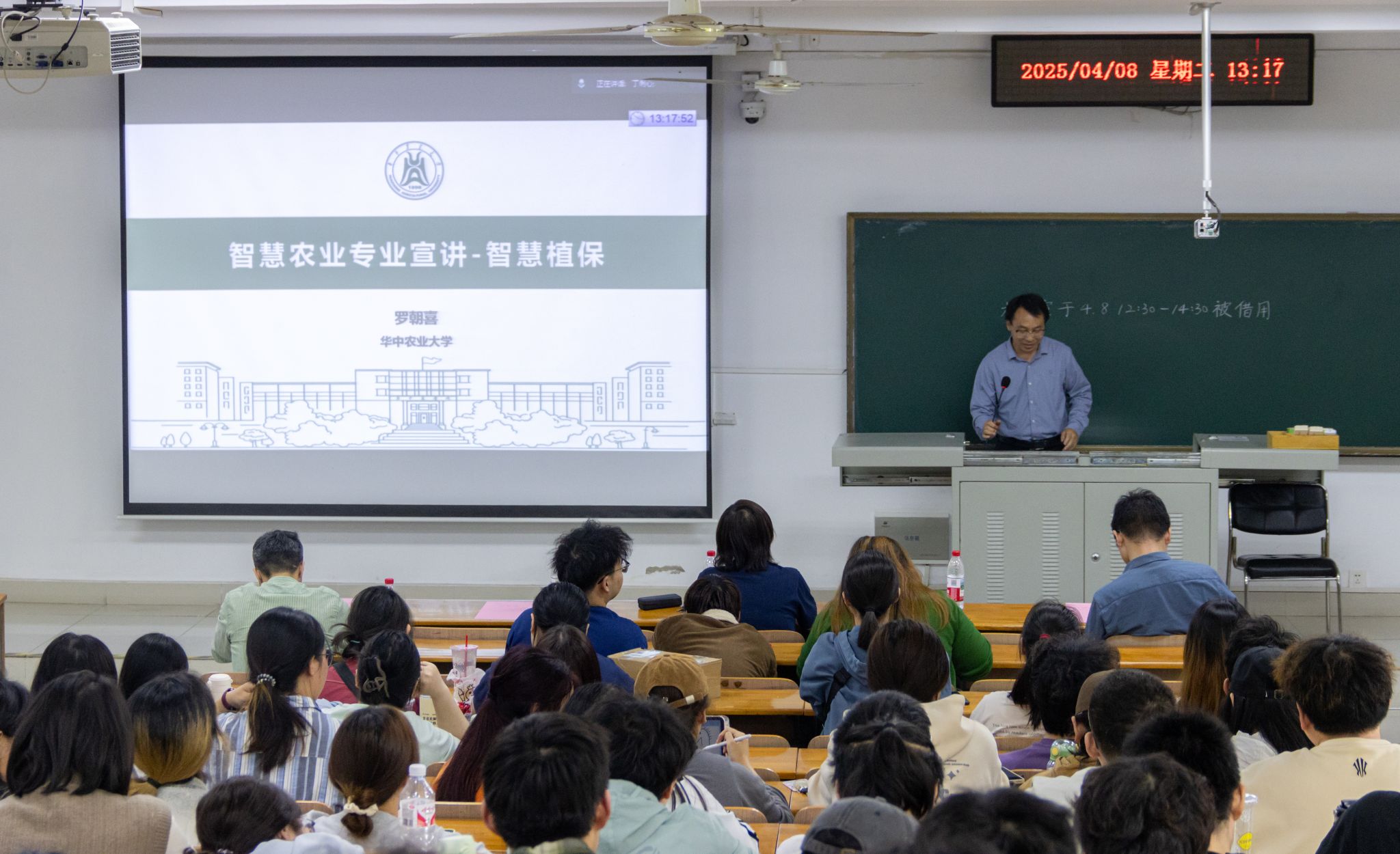 罗朝喜进一步介绍了智慧植保的主要内容。他指出,智慧植保能够实现有害生物的智能监测与预警、有害生物抗药性监测、植保无人机施药等多方面应用。同时,他展示了智慧植保方向的课程群,鼓励同学们积极选择。