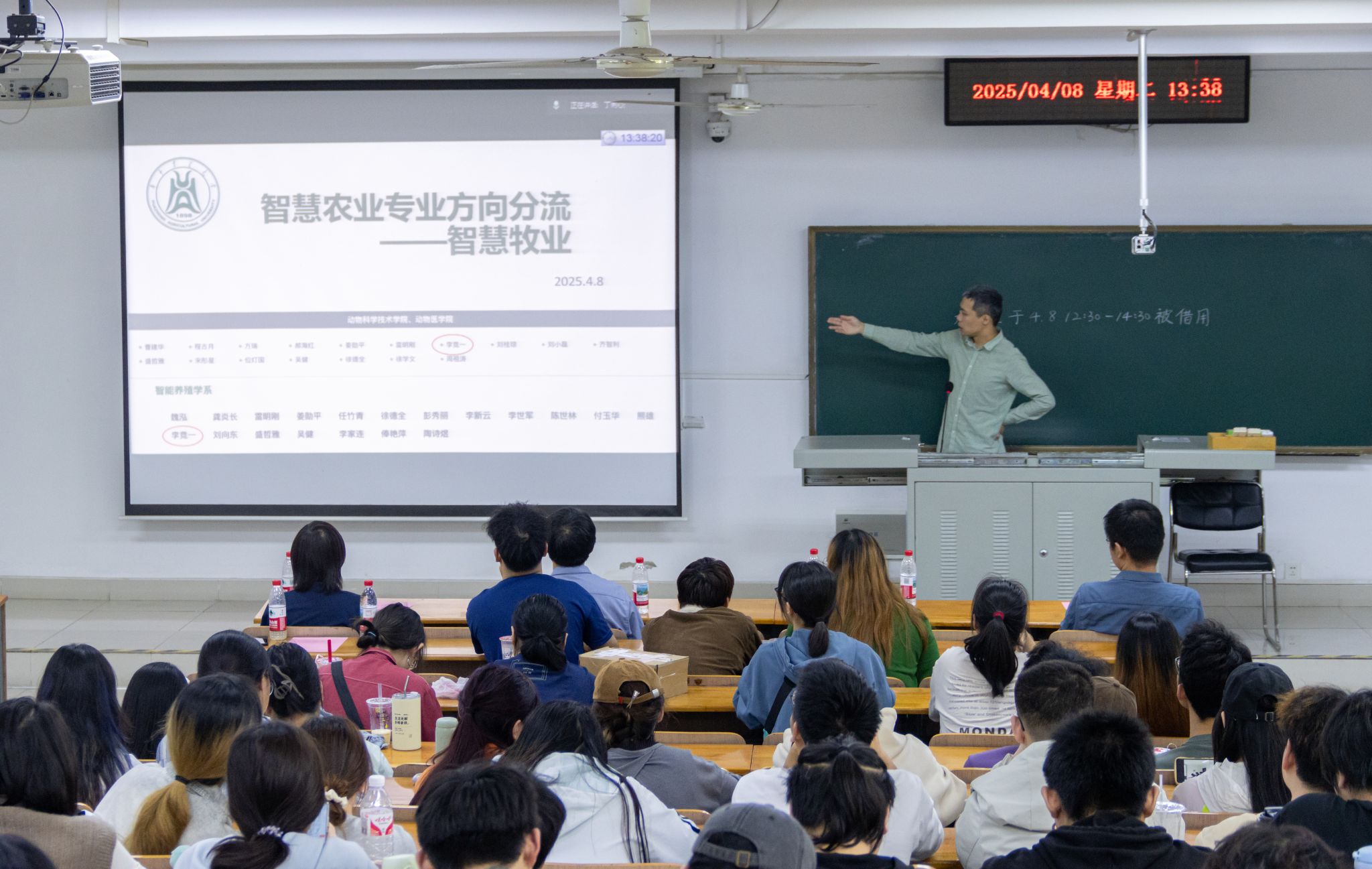 4月8日中午,2023级智慧农业专业方向分流宣讲会于三教C205教室召开。智慧植保方向罗朝喜教授、智慧育种方向李林教授、智慧园艺方向黄远教授、智慧生产方向熊栋梁教授、智慧渔业方向曹小娟教授、智慧牧业方向李竞一研究员受邀为同学们详细解读各方向特色与发展前景,会议由书院辅导员宋慈主持。