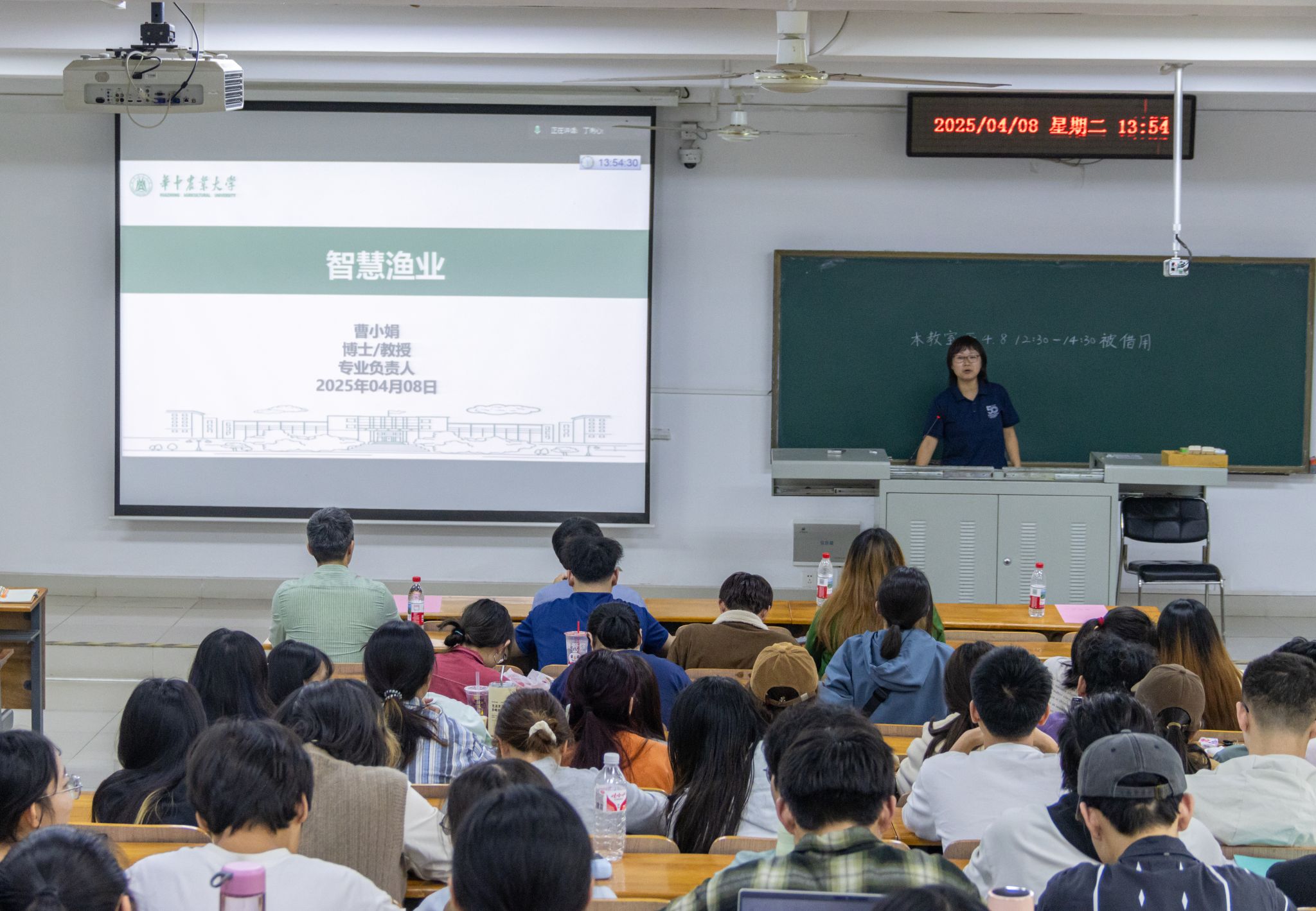 曹小娟指出,尽管中国是世界第一水产养殖大国,但由于一些国家在“智慧”领域的弯道超车,我国尚未成为第一强国。她介绍了池塘、浅海、滩涂、大水面、陆基循环水工厂化养殖等养殖模式,描绘了当下智慧渔业的发展情况。曹教授表示,我校水产专业是国家A类学科,被誉为“中国水产企业培育的摇篮”,她代表水产学院全体师生欢迎同学们的加入。